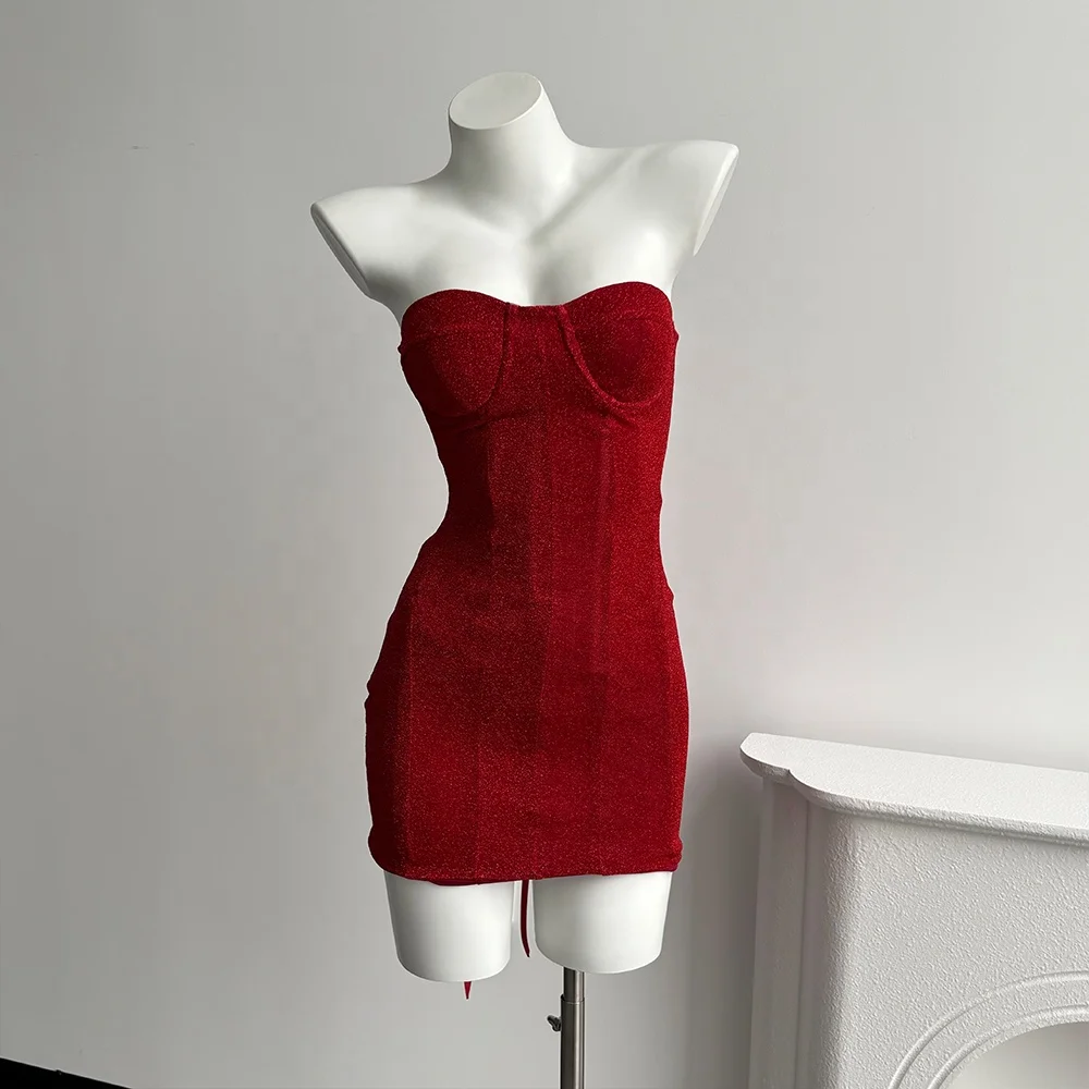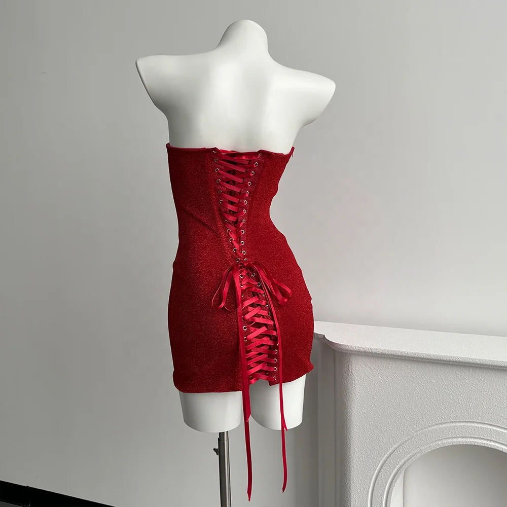 High-Quality Party Bar Fashion Events Nightclub Women Sexy Exquisite Elegant Stylish Red Strapless Sequin Bodycon Mini Dress
