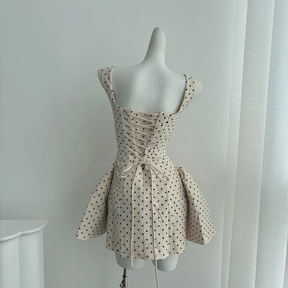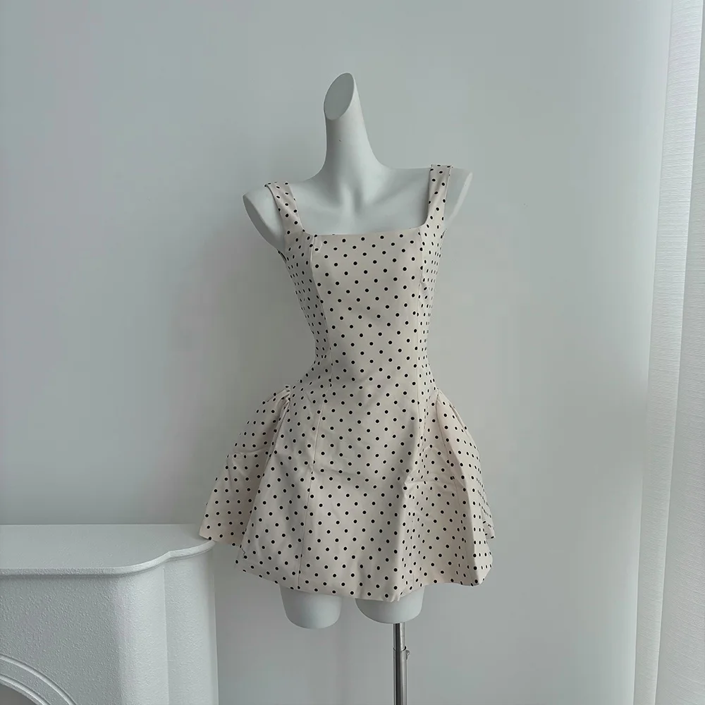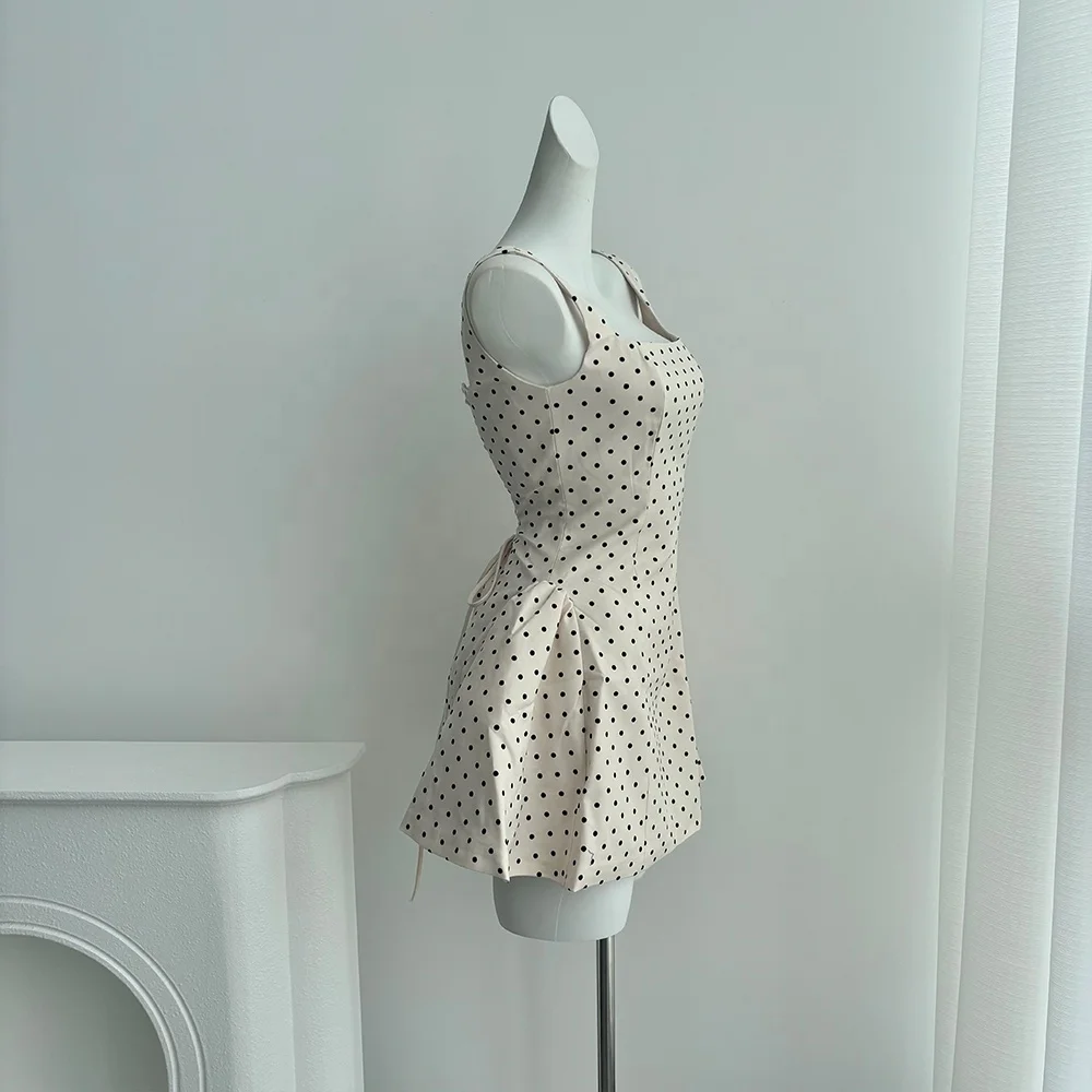 Hot Sale Casual Fashion Square Collar Versatile Polka Dot Strap Dress lady Summer Mini slip Dress