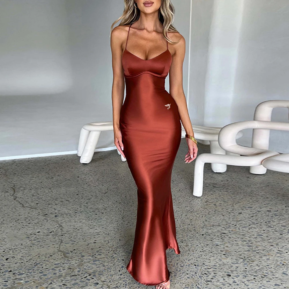 ZYHT 73957 Hot Selling Women Lady Printed Satin Beige Mermaid Fish Tail Floor Length Party Cocktail Evening Dress Gown