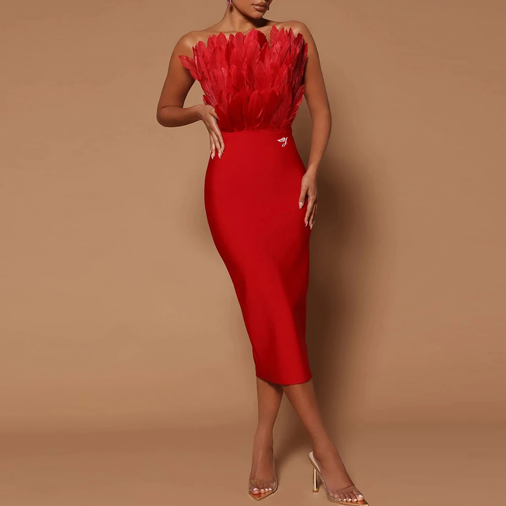 SMO Midi Strapless Sleeve Casual Dresses Red Tassel Nylon Casual Dresses Womens Sleeveless Sexy Breathable Casual Dresses