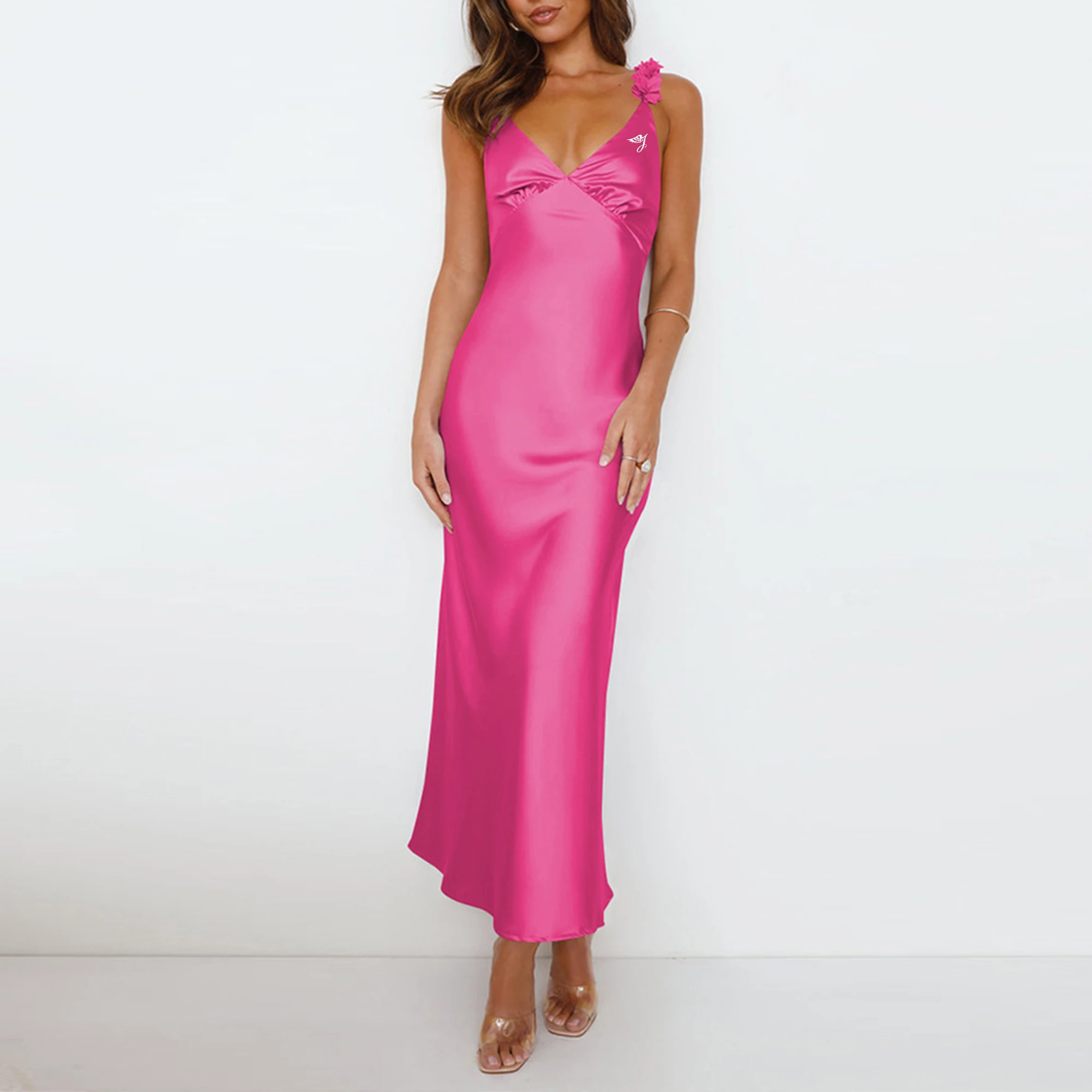 OEM ODM Temperament High-End Fashionable Evening Satin Dress Satin Long Flowers Gown Dress