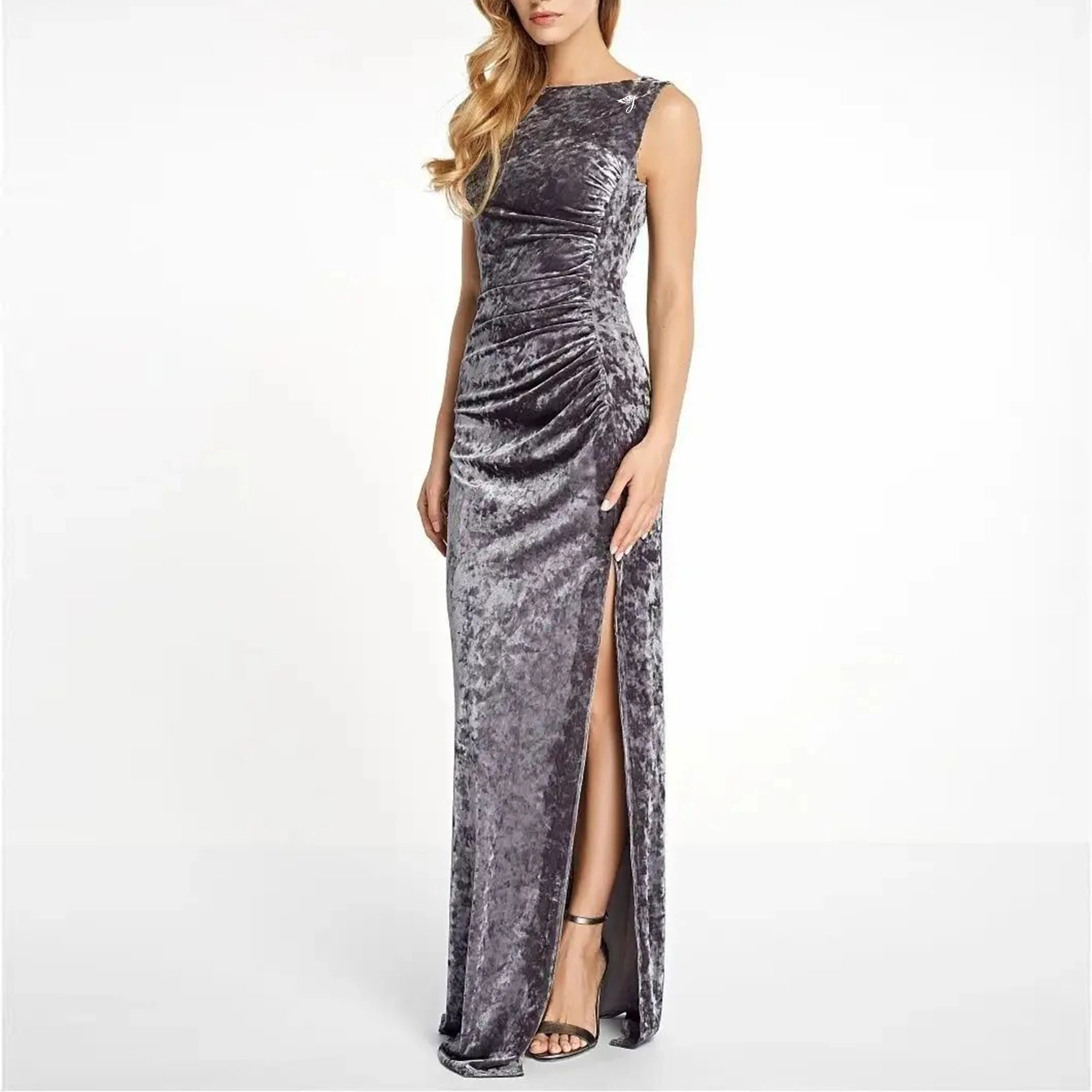 OEM ODM Velvet Slit Sleeveless Ruffled Event Party Gown Dresses Women Party Evening Elegance for Wedding