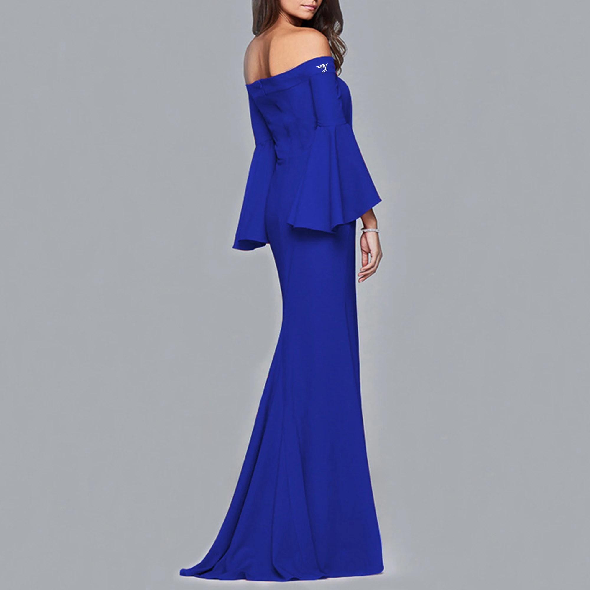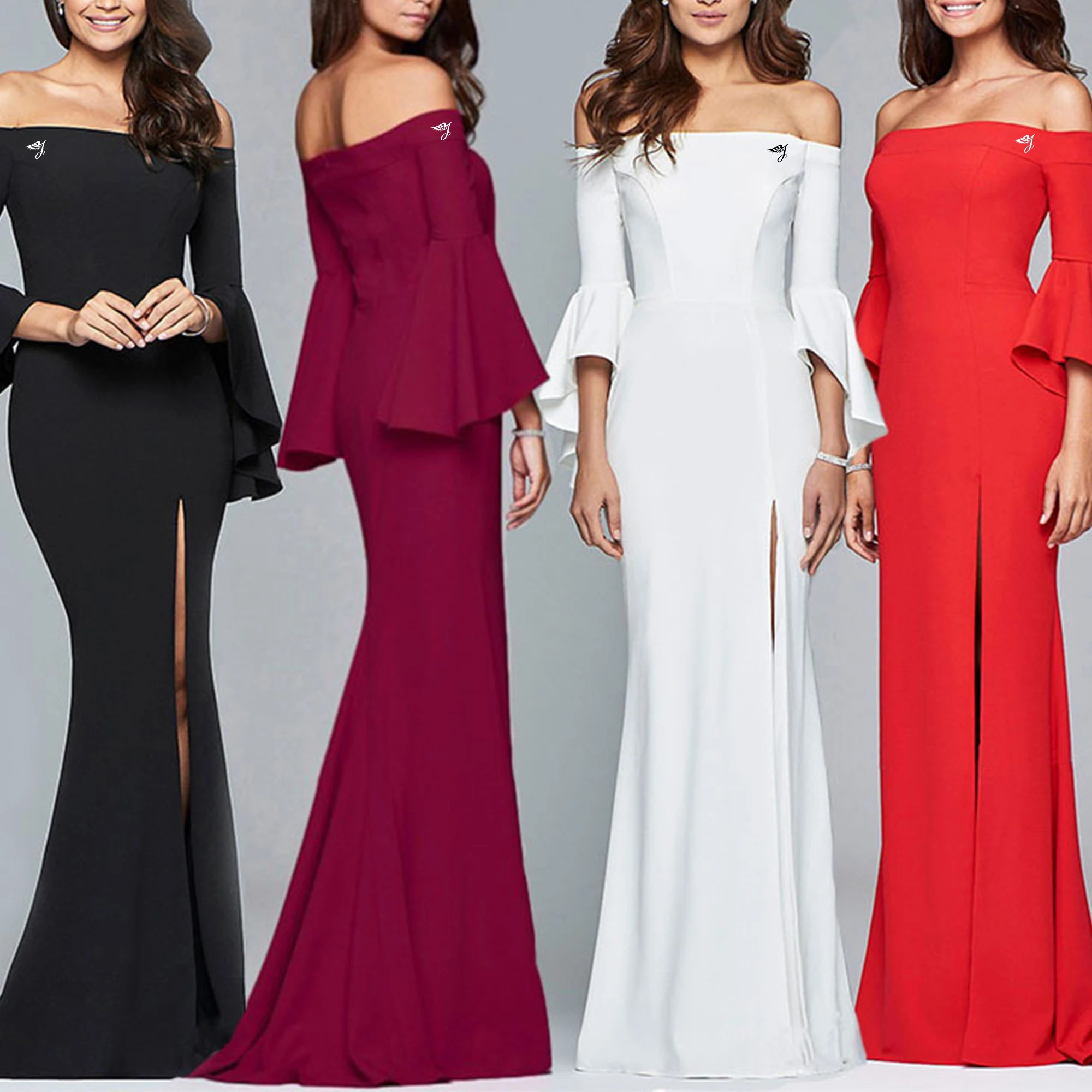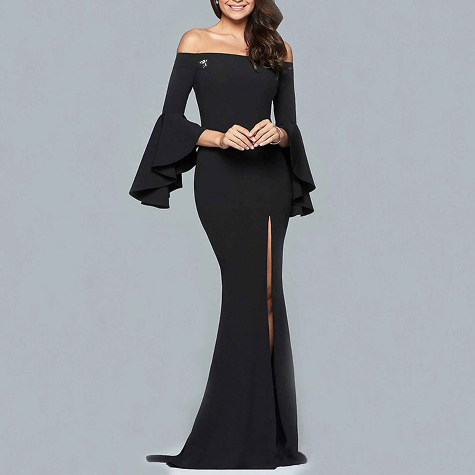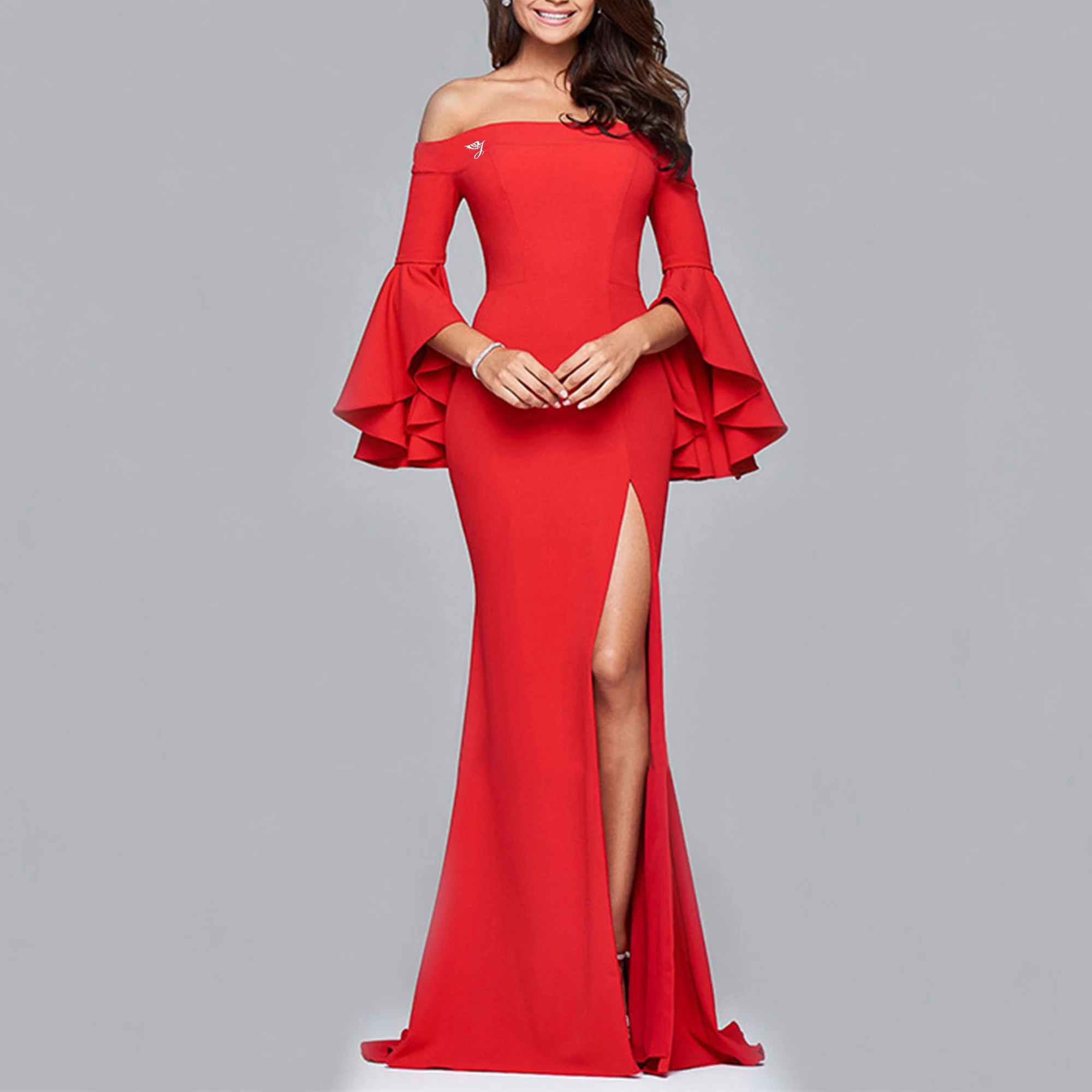 Professional OEM ODM Fast Shipping Bell Sleeves Slit Womens Formal Luxury Evening Gown Dress Party