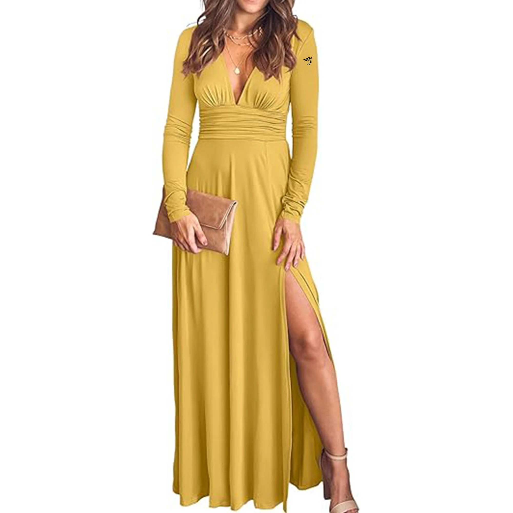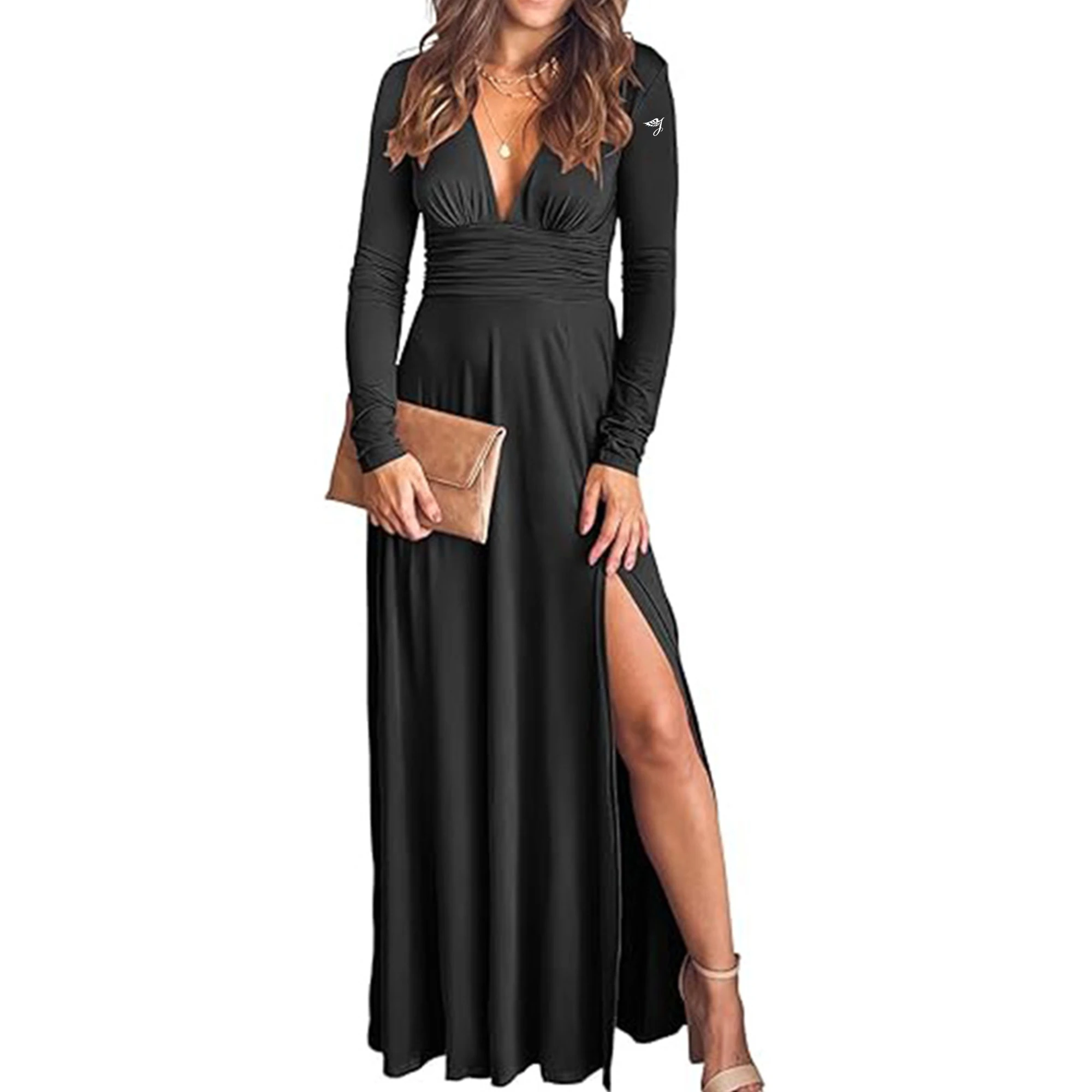 Wholesale Custom European American Women's V-Neck Ladies Evening Elegant Formal Dress Gowns for Ladies