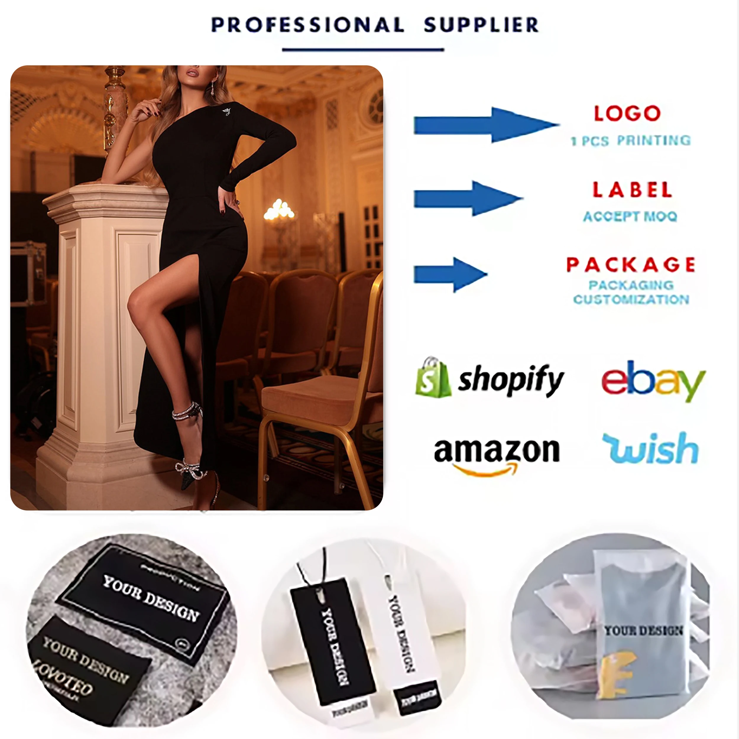 Custom Oblique Collar Slim Fit Split Mid Length Hip Hugging High End Evening Dresses Luxury Elegant Gowns for Women