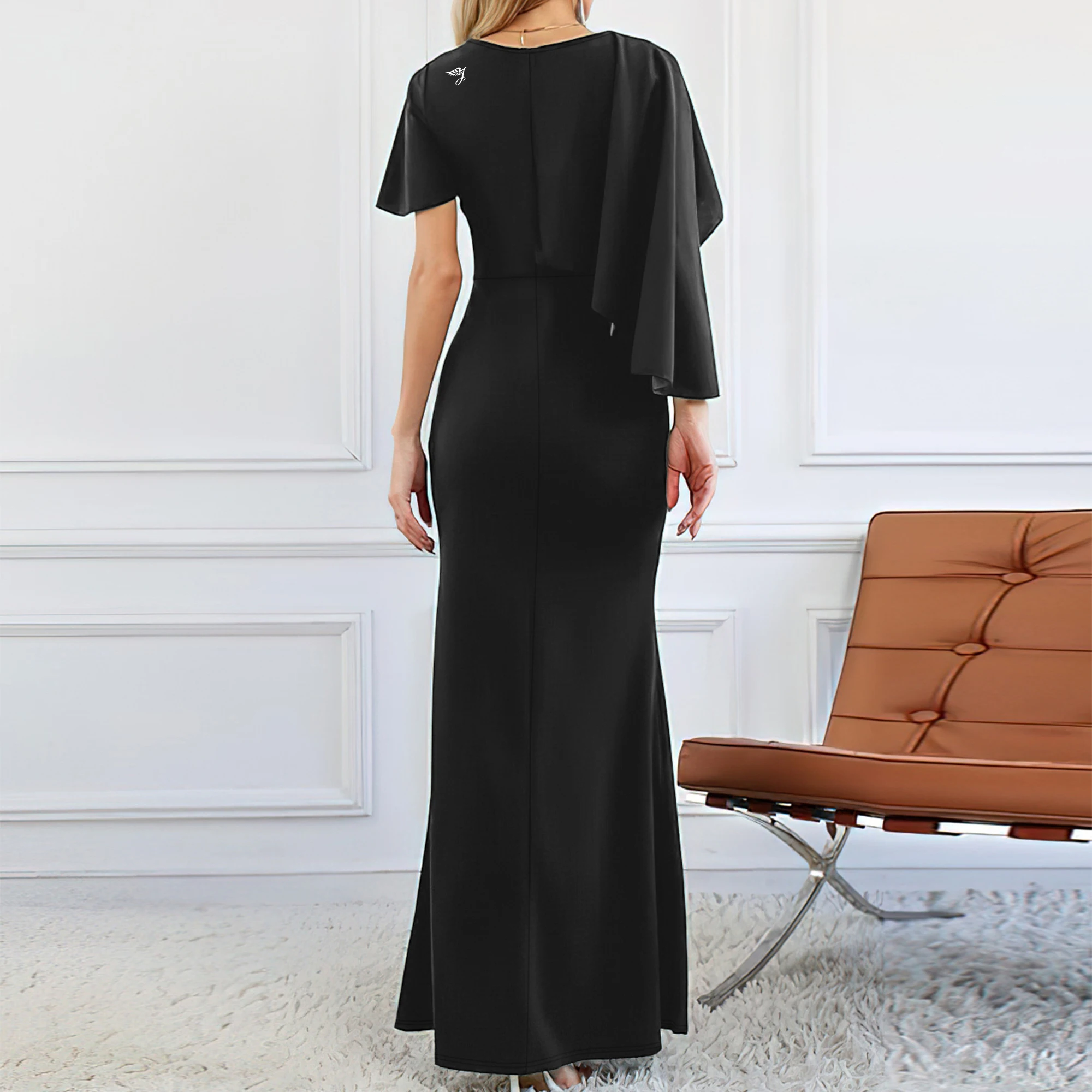 ZYHT 73571 Custom Elegant V-Neck Cape Sleeve Dresses Trendy Straight Yellow Maxi Party Gowns Modest Evening Dress for Women