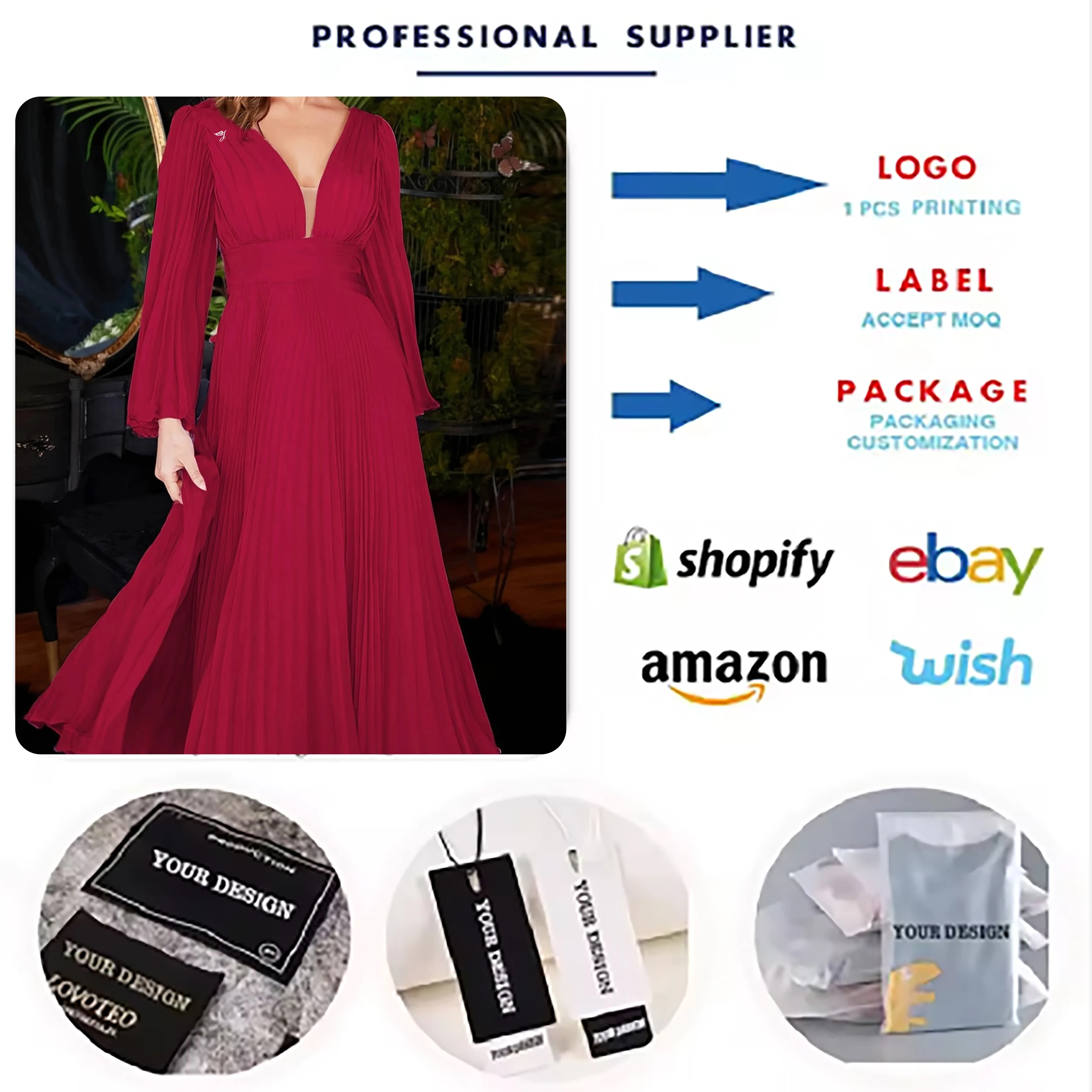 OEM Wholesale Chiffon Long Sleeve V Neck Luxury Gala Dresses Formal Women Elegant Party for Ladies