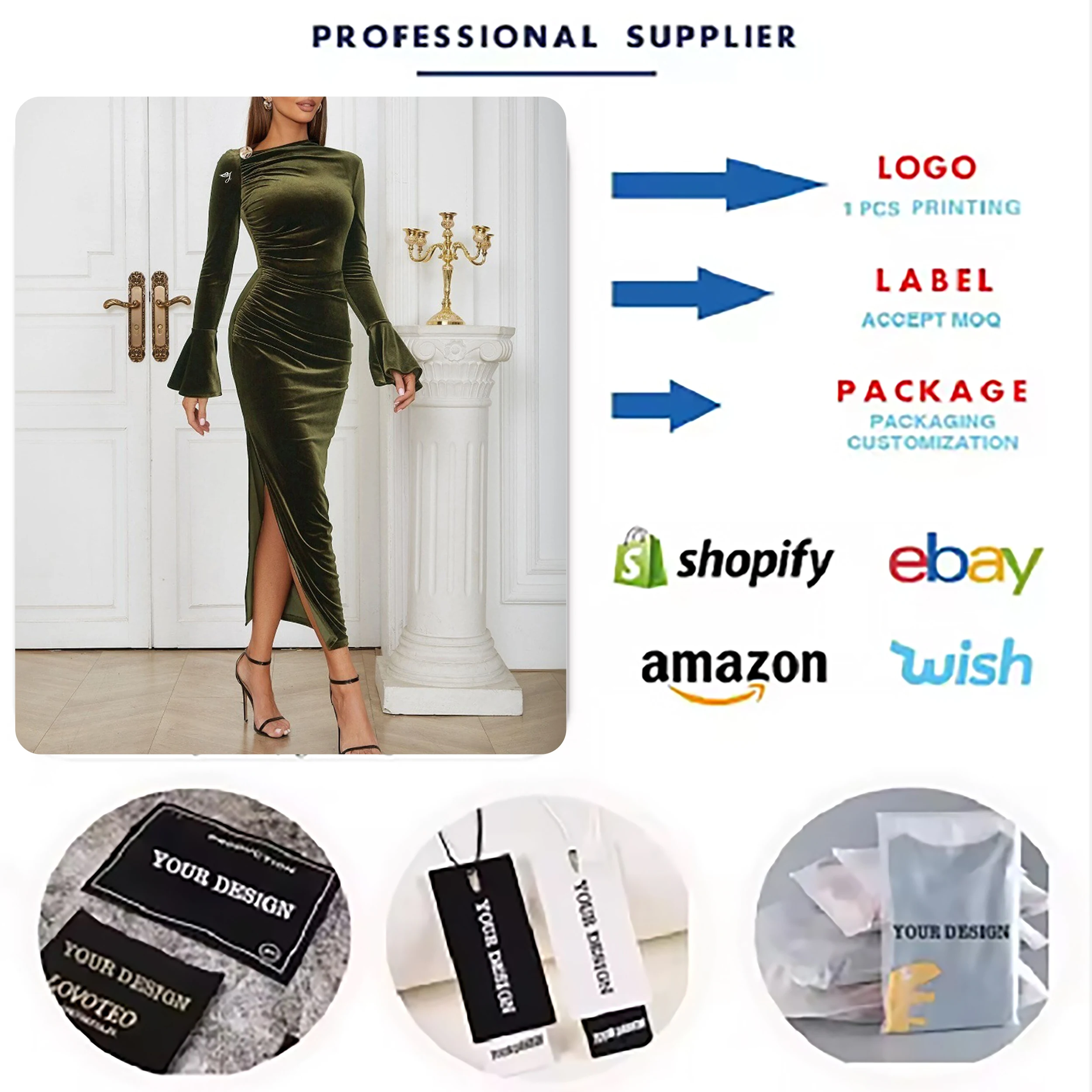 ZYHT 73902 Dark Green Blue Long Sleeve Simple Elegant Evening Dress Customize High End Women Clothing Manufacturer
