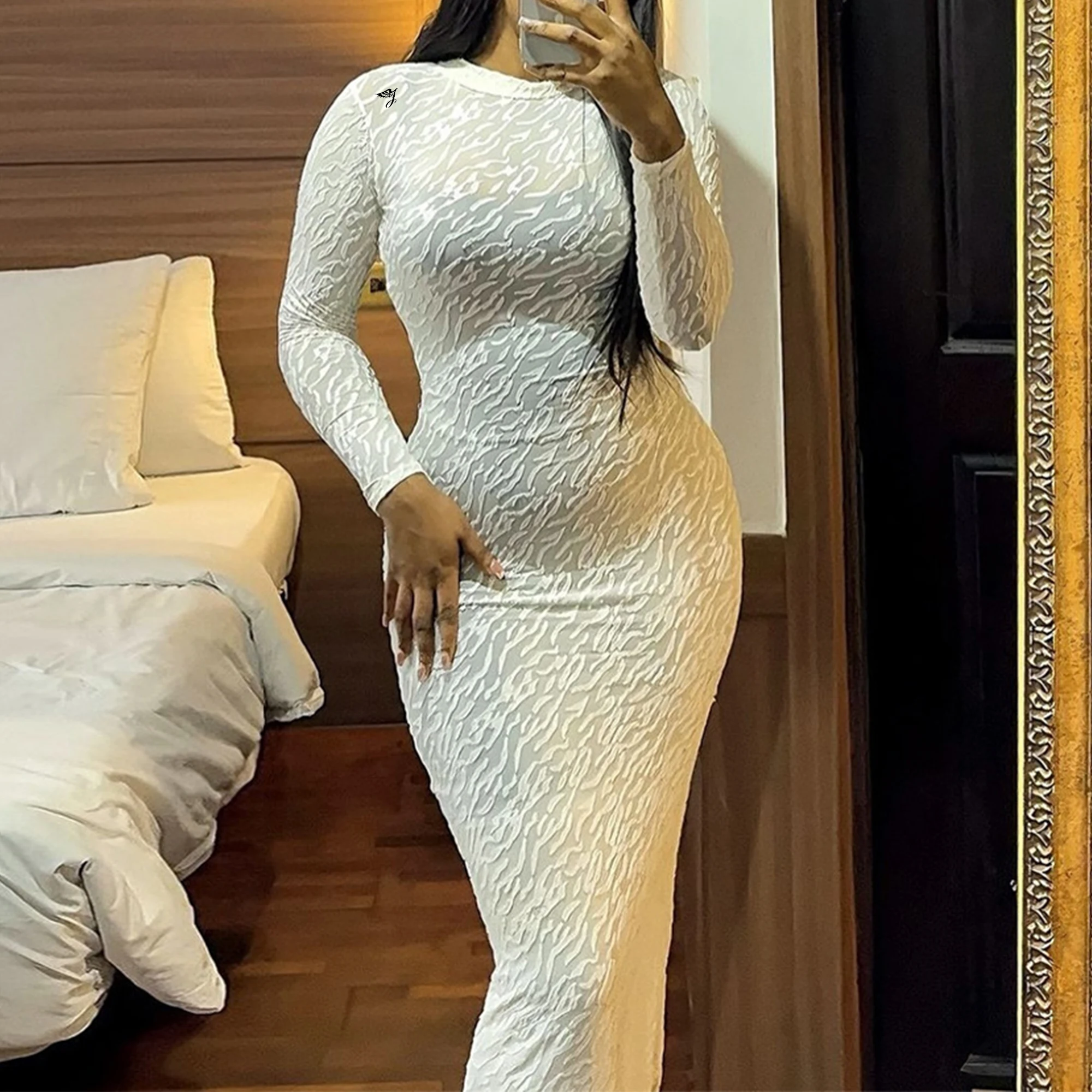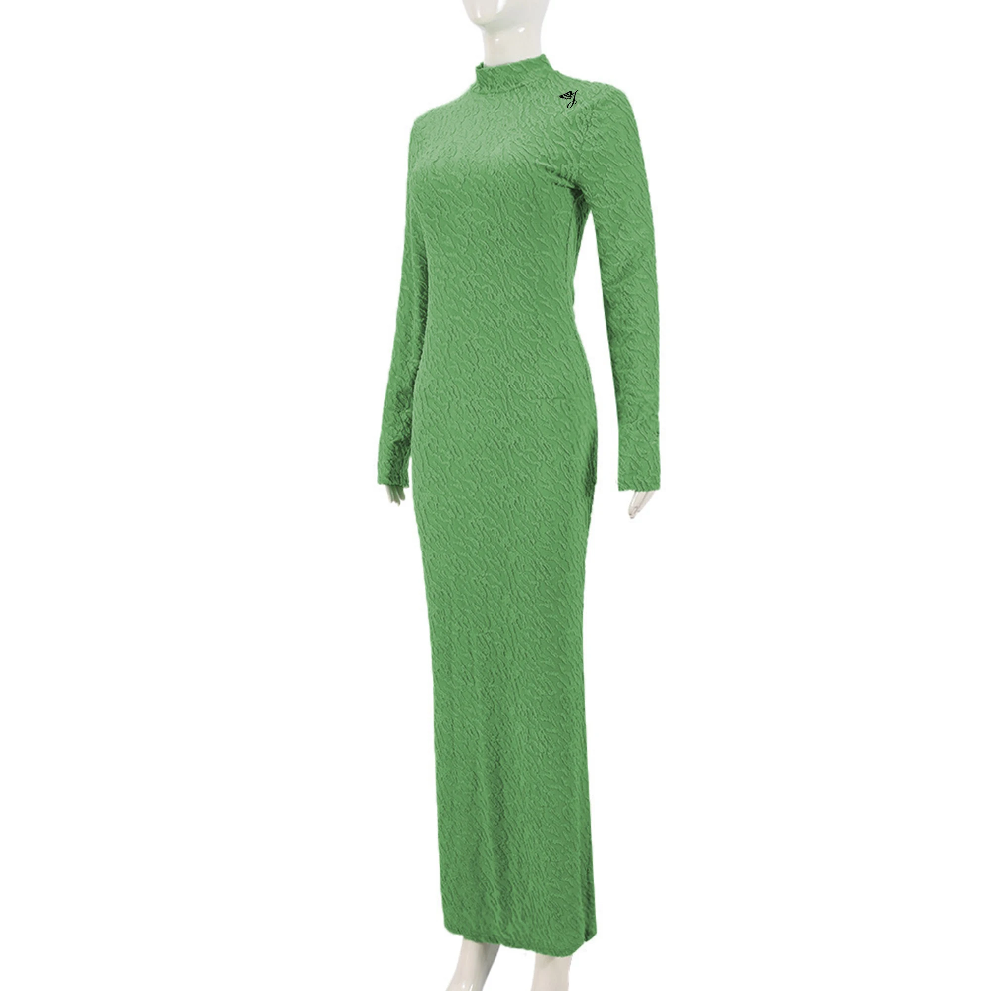 OEM Custom Women's European American Slim Dress New Release Autumn Winter Crew Neck Long Sleeve Flocking Crew Neck Dress