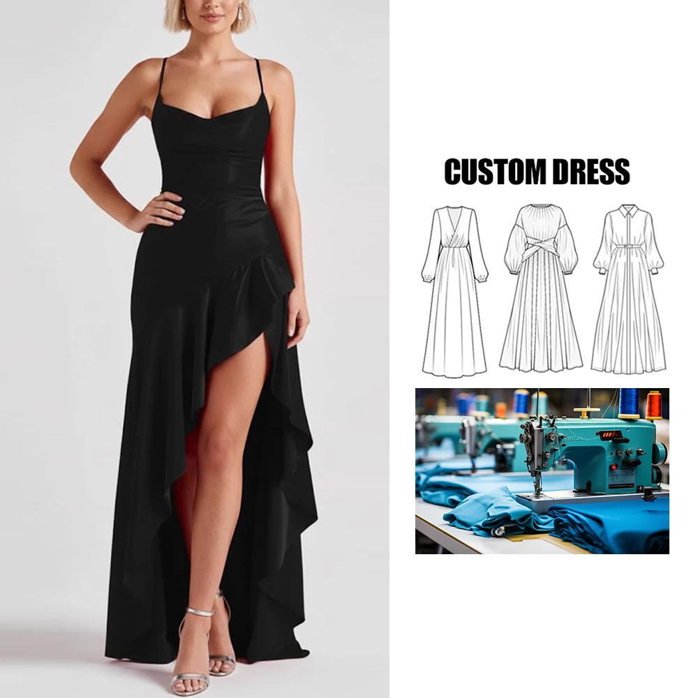 Brand Customization Women's Summer Sexy Suspender Backless Ruffled Irregular Design Satin Cocktail Dress Irregular Dress
