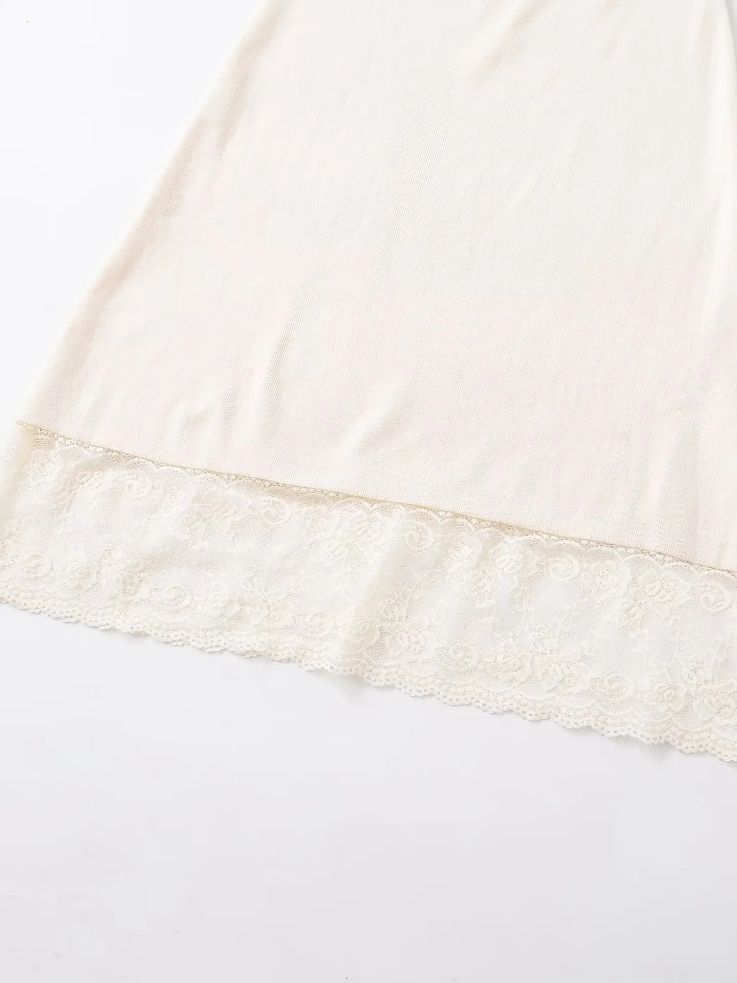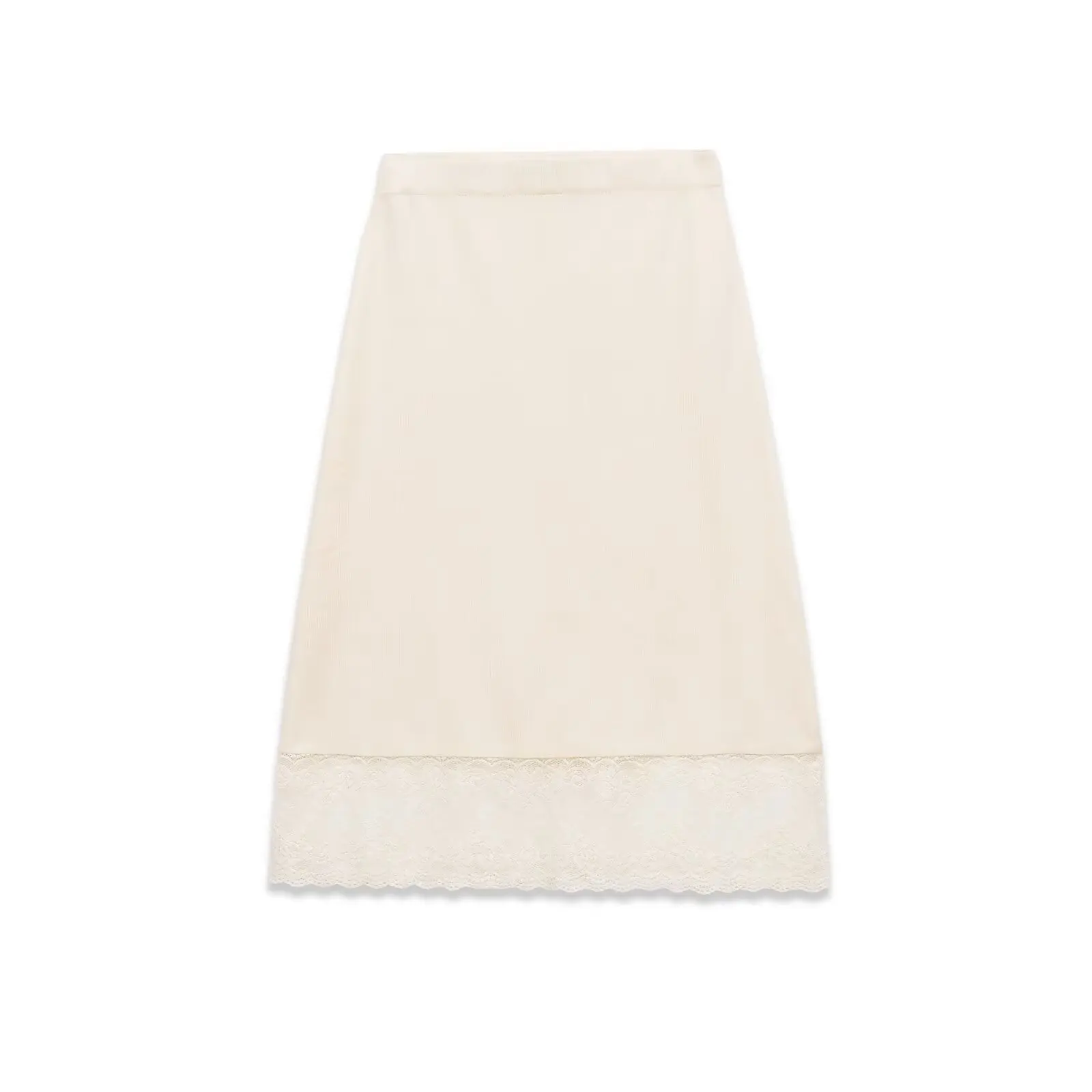 Custom OEM Women's Mid-Rise Knit Midi Skirt with Beaded & Lace Insert Detail for Everyday Elegant Style Wholesale Vintage Skirt