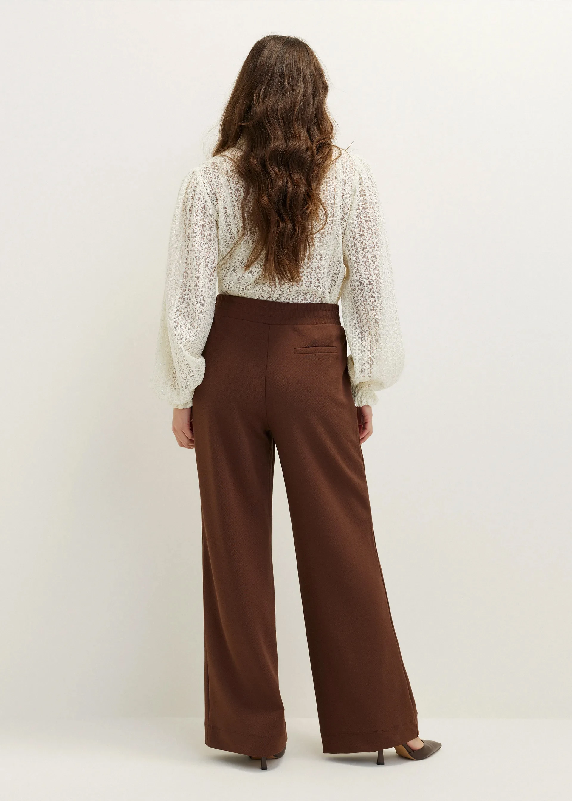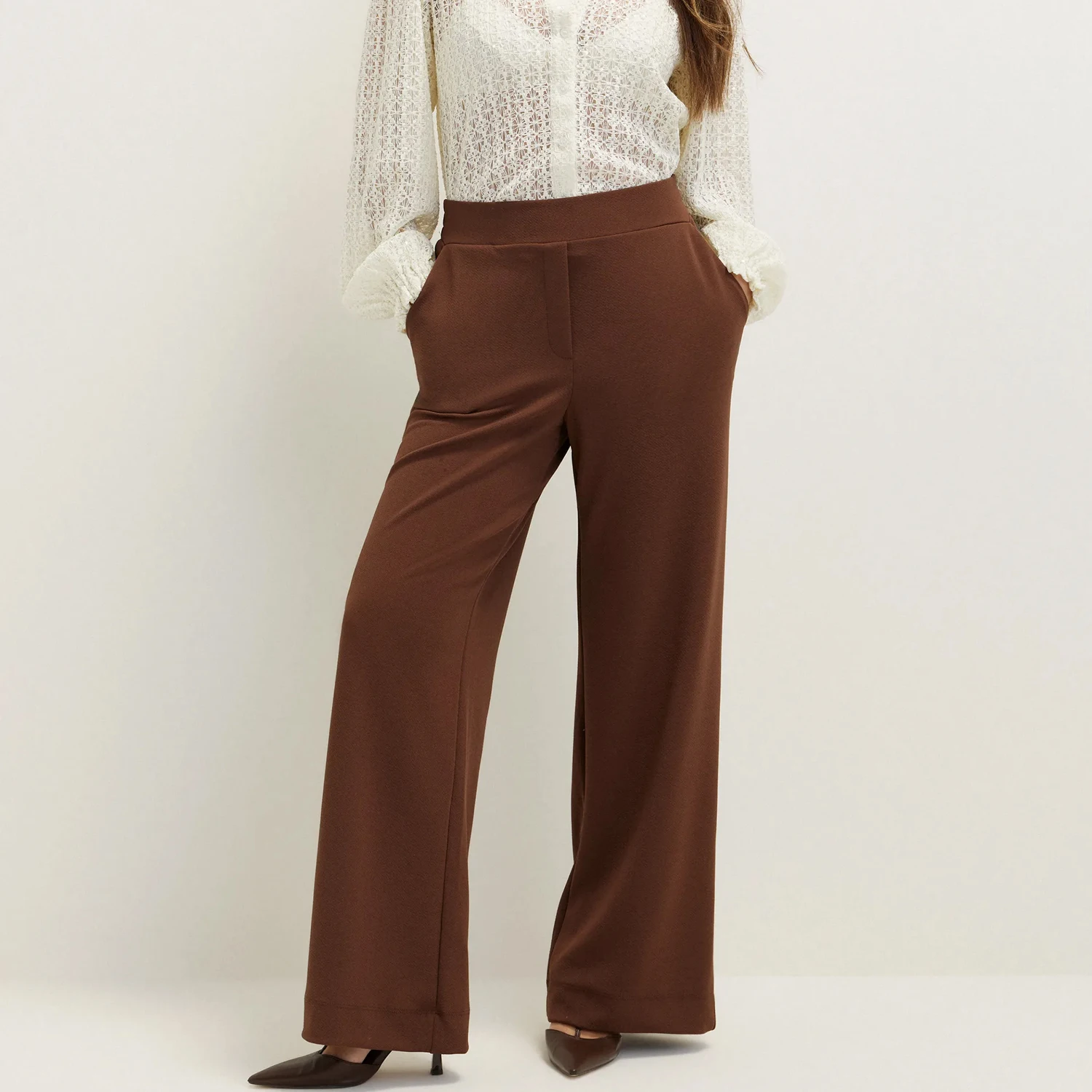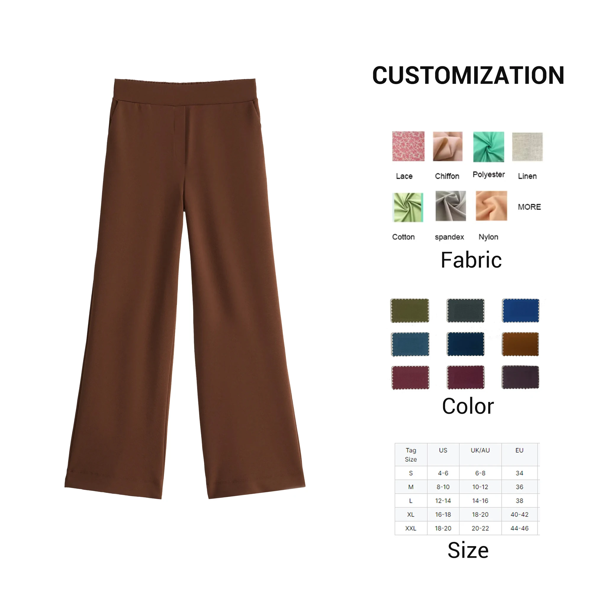 Custom OEM Women's Wide Leg Pants Elastic Waist Trousers with Side Pockets & Faux Welt Pockets for a Basic Wardrobe Staple Pant