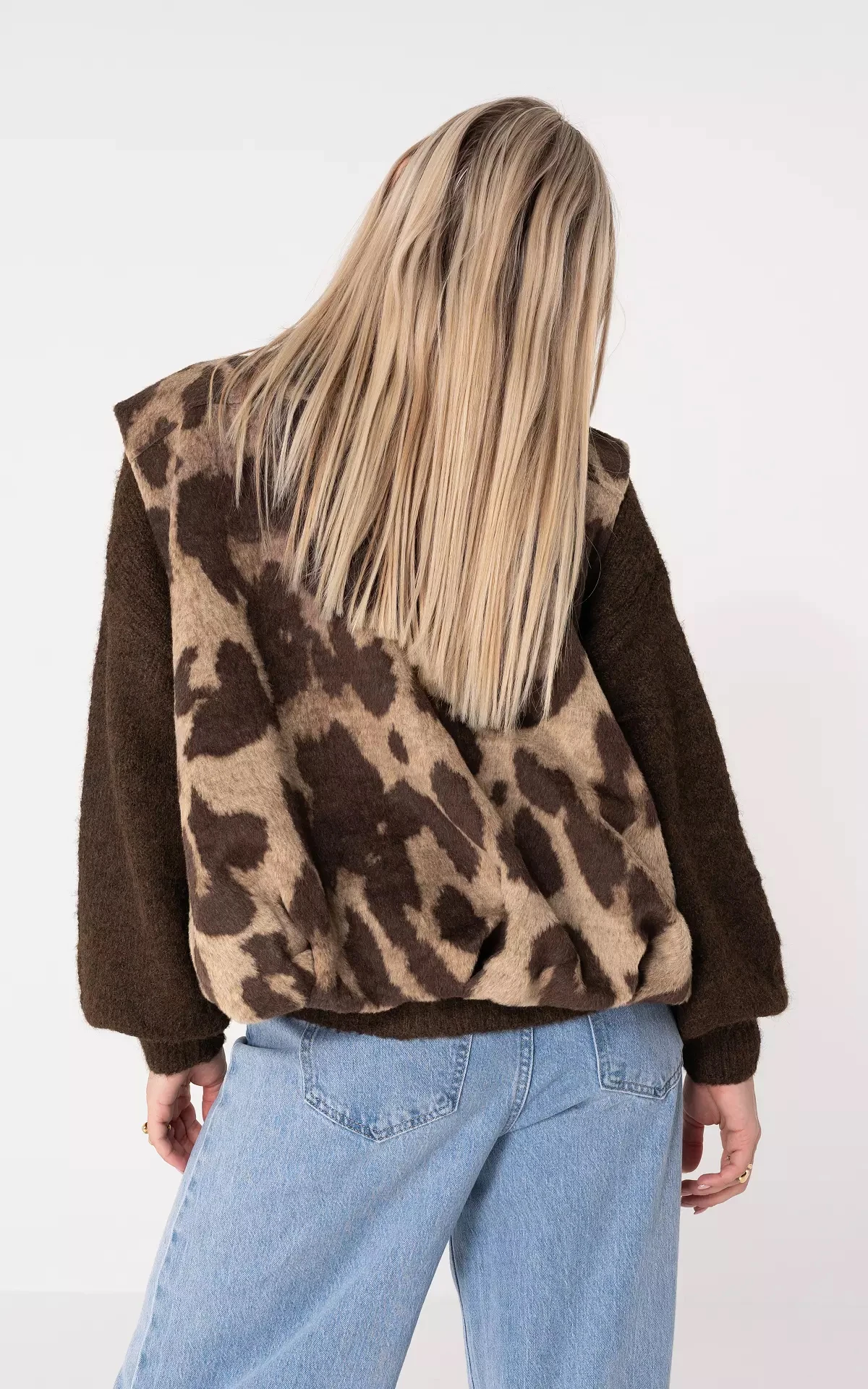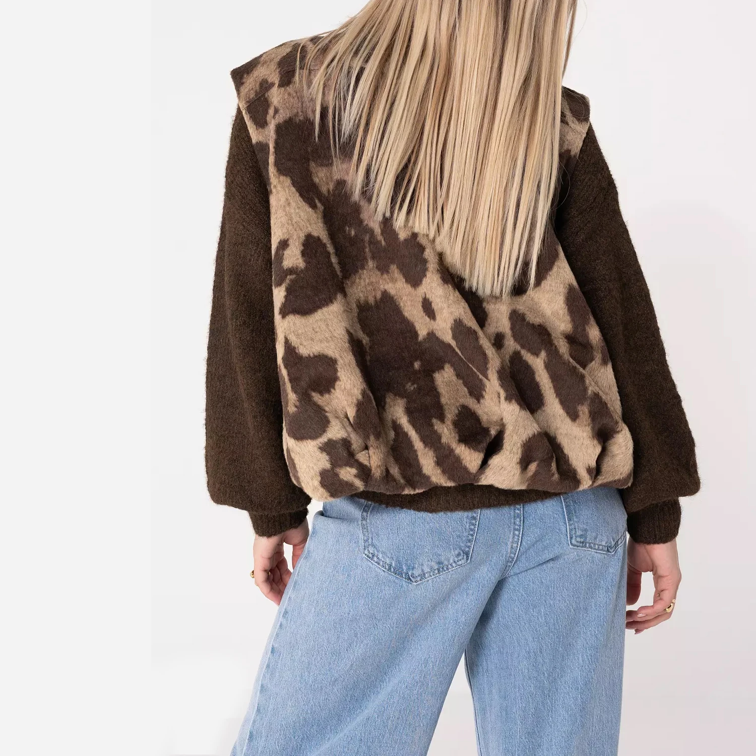 Custom Women Leopard Print Vest Zip up Animal Pattern Gilet Beige Waistcoat With Pockets Autumn Winter OEM Manufacturer Apparel