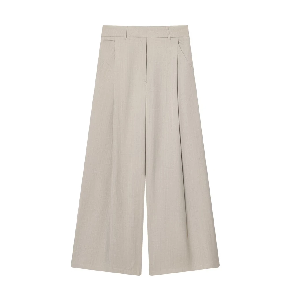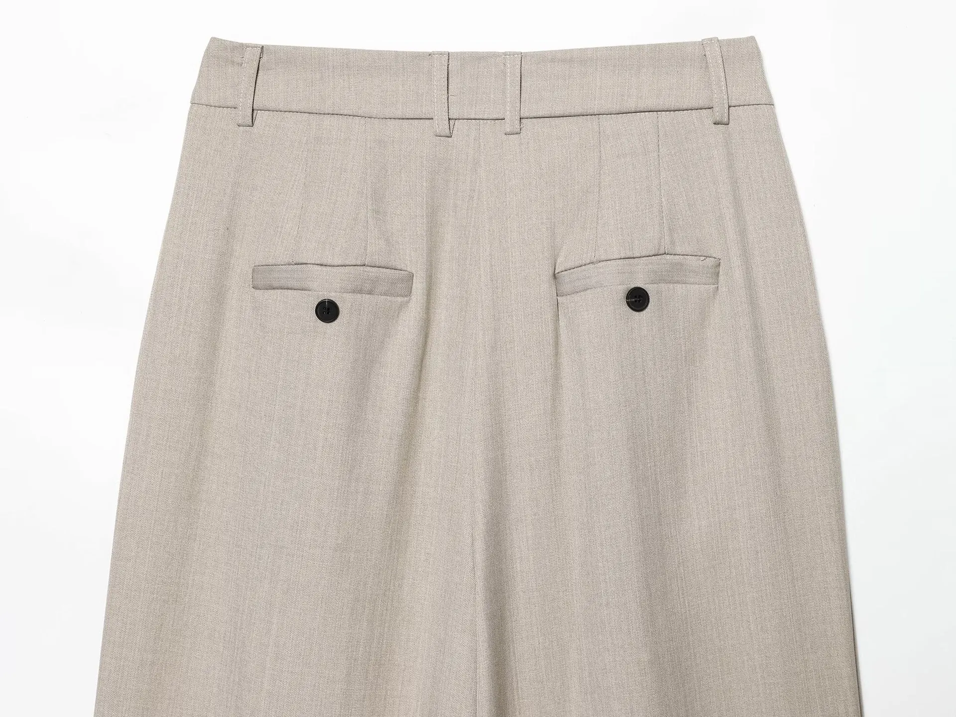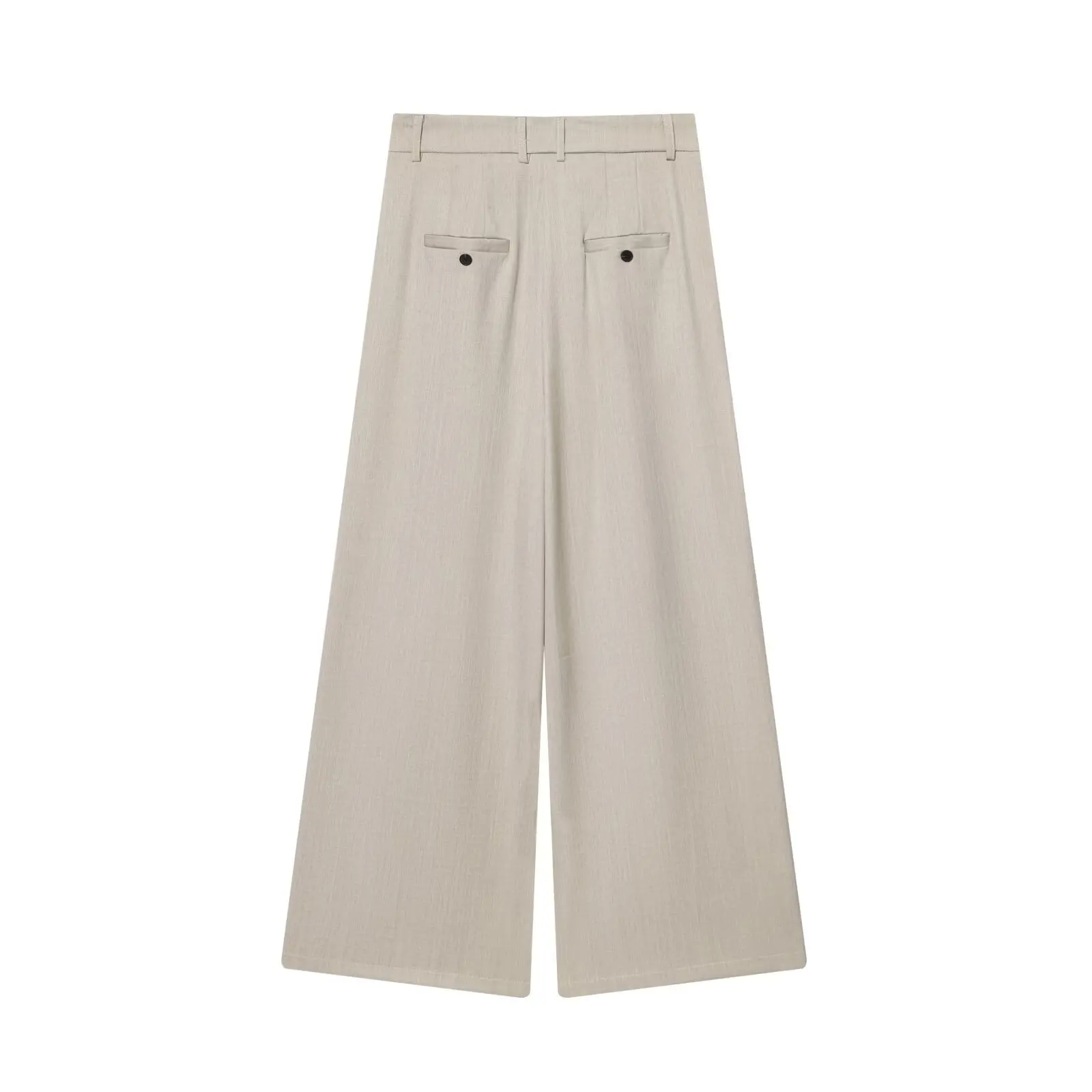 Custom OEM Women's High Waist Pleated Wide Leg Trousers Relaxed Fit Minimalist Pants for Casual Style Elegant Lady's Work Office