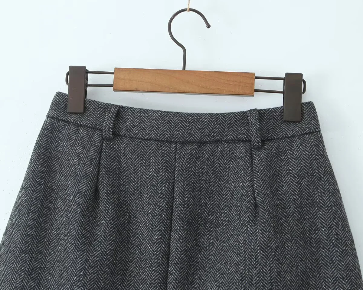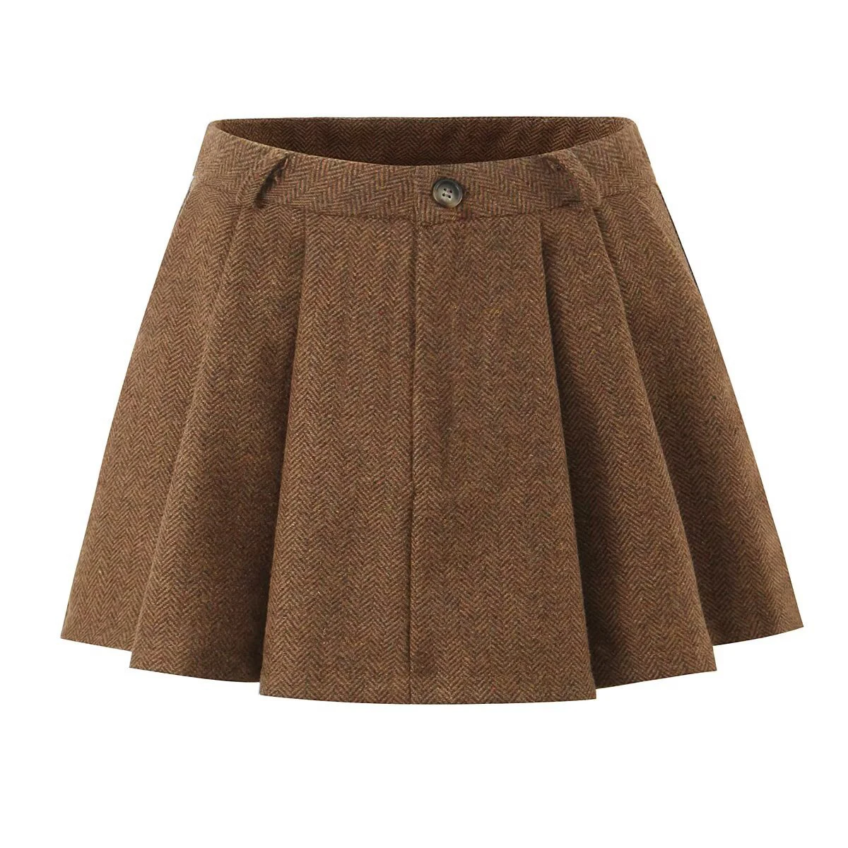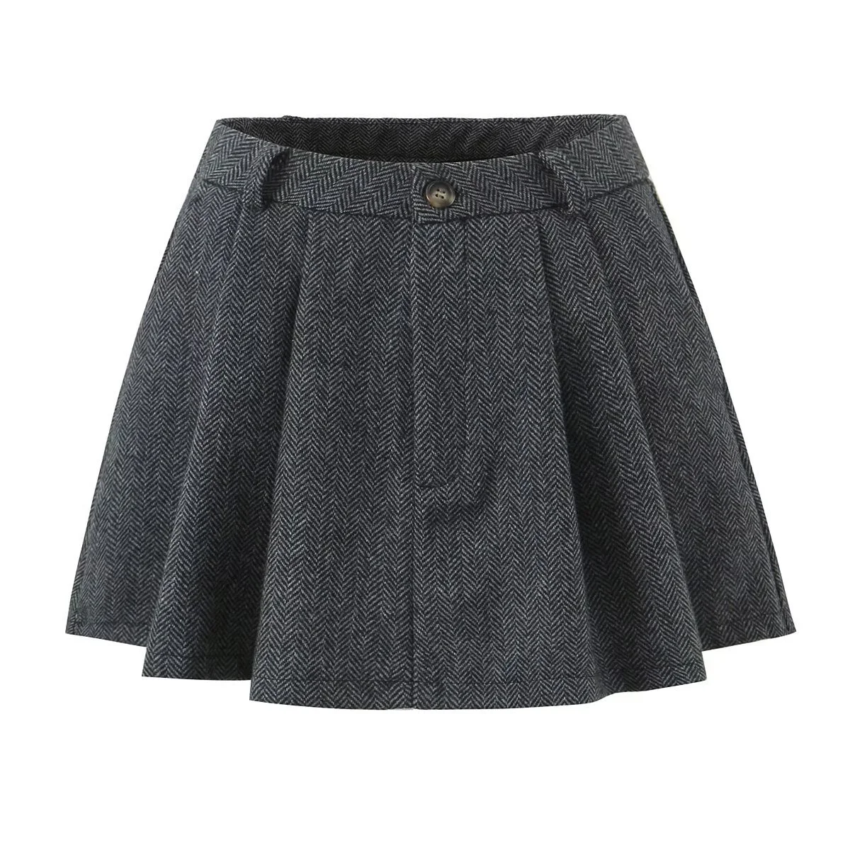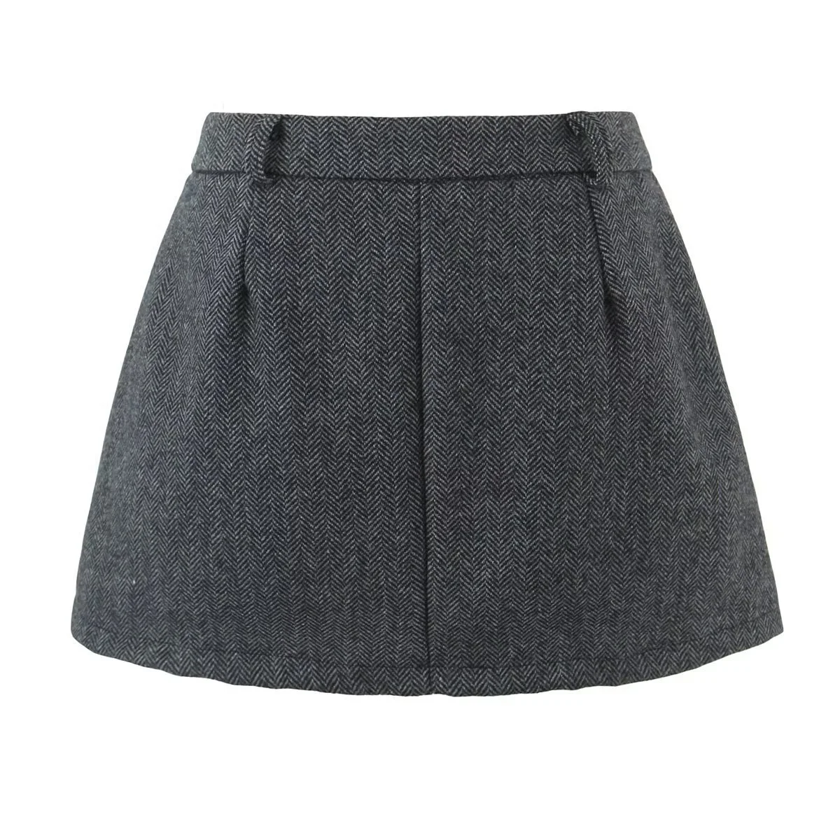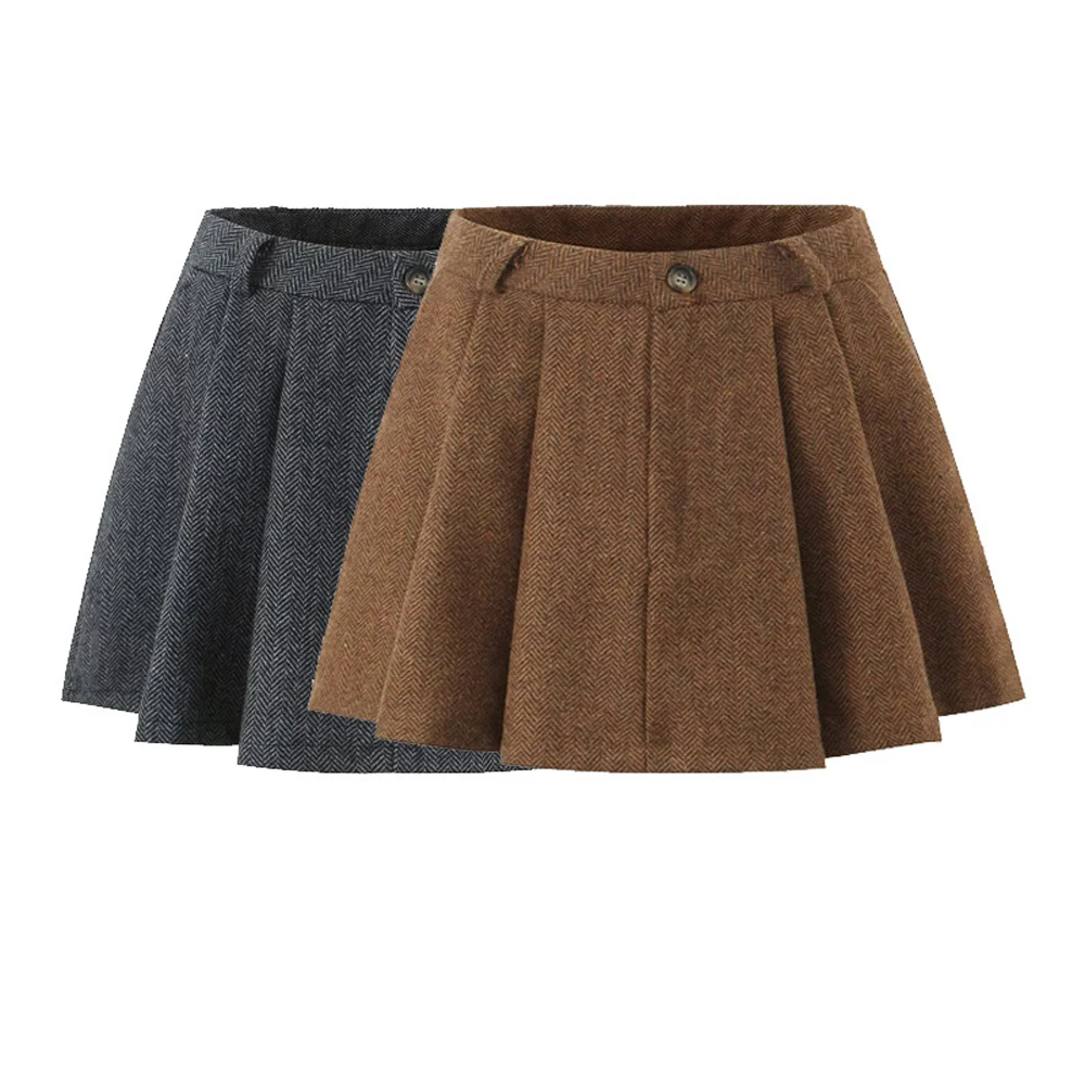 Custom OEM Women's Preppy Pleated Herringbone Wool Blend Skirt | A-Line Preppy Style for a Smart Casual Look Vintage Lady Skirts