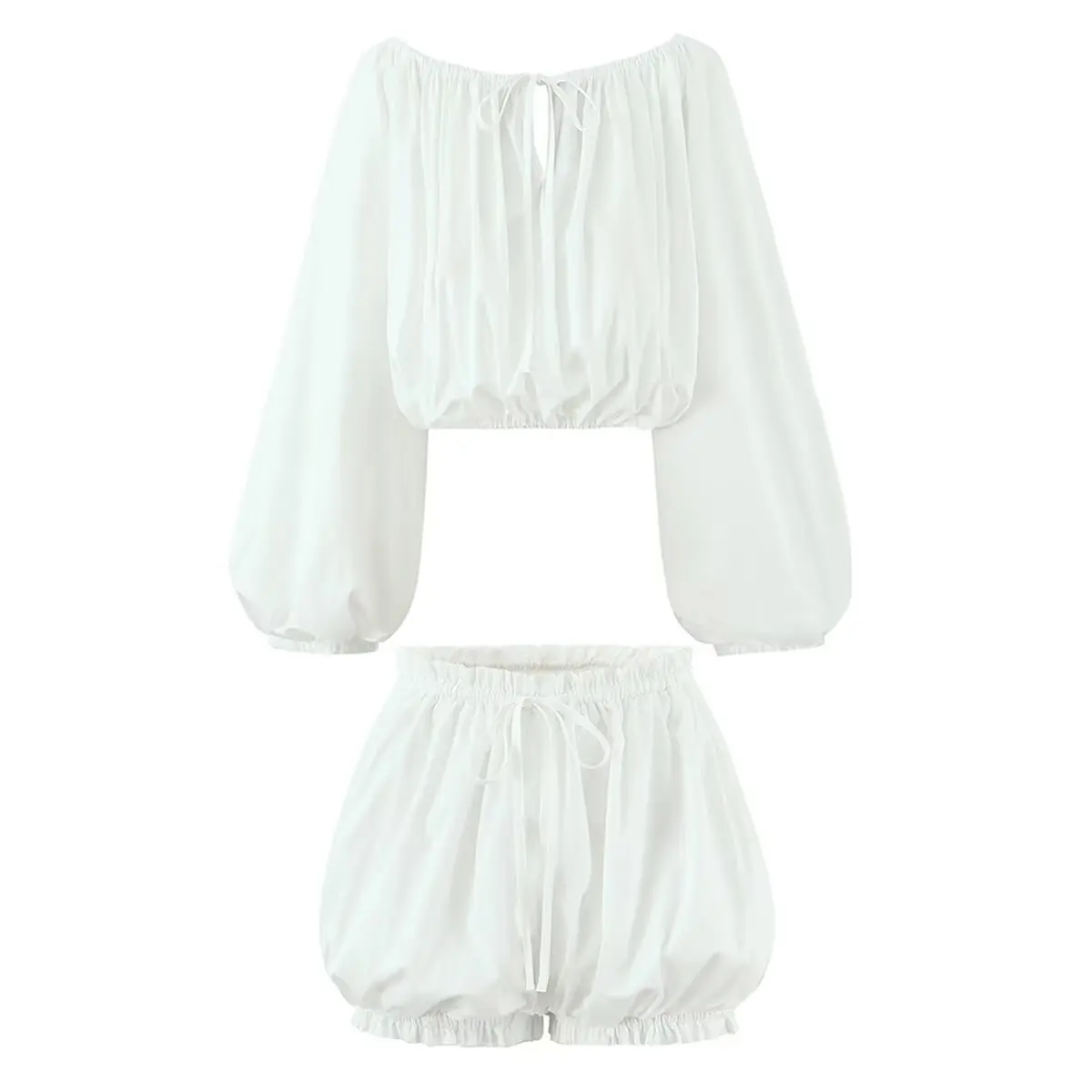 Custom OEM Women's Off-Shoulder Crop Top & Bloomer Shorts Set | Sweet Summer Two-Piece for Beach Vacation Outfits Cotton Sets