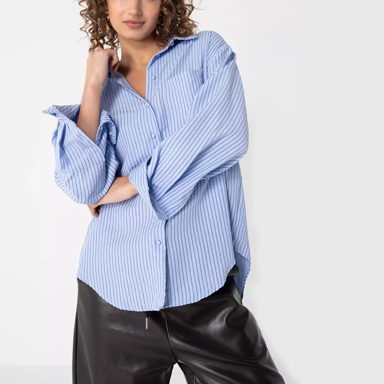 Custom Women's Oversized Striped Shirt | Pure Cotton Button-Down Blouse for Effortless Style Work Office Vintage Casual Shirts
