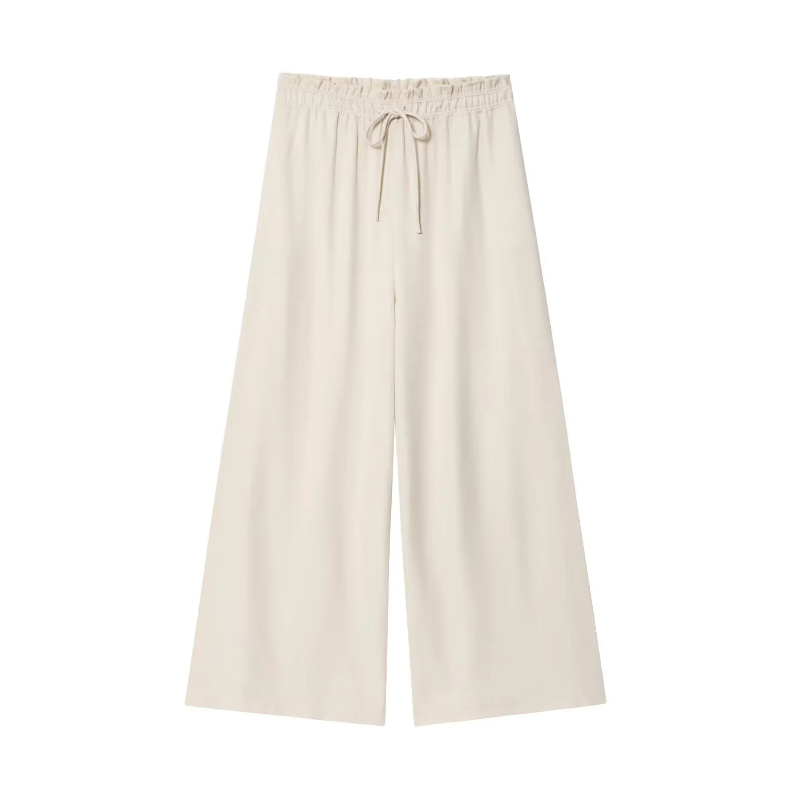 Relaxed Puff Sleeve Coord Set Custom Women's Oversized Shirt Wide Leg Pants 2-Piece Linen Blend Loungewear OEM/ODM China Factory