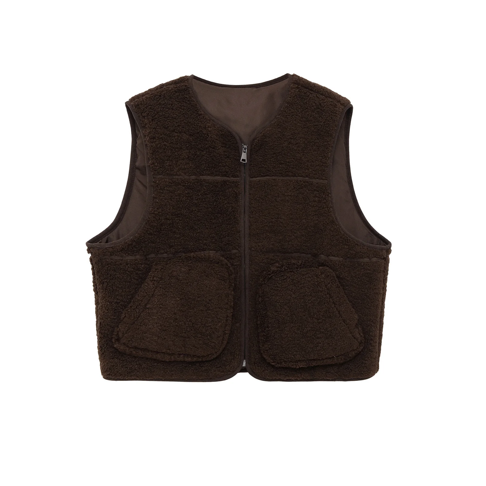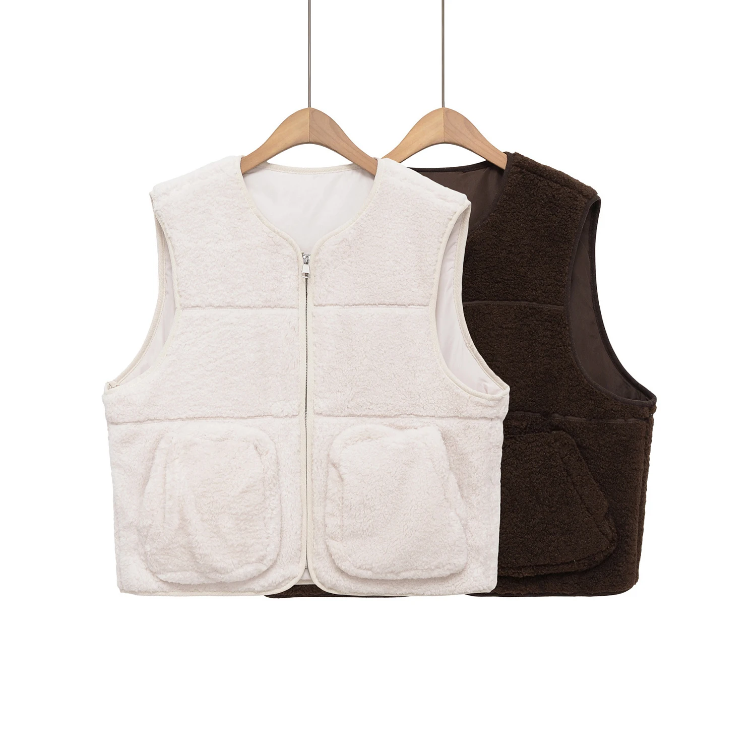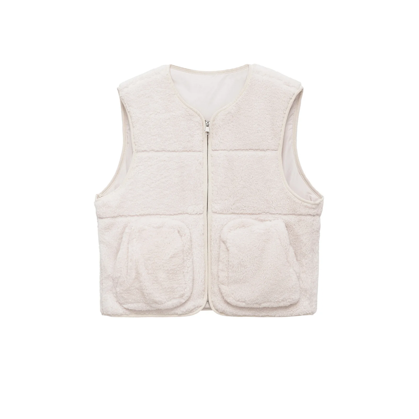Custom OEM Women's Zip-Up Sleeveless Shearling Vest Loose Fit Cold-Proof Outdoor Wear Wardrobe Essential Utility Waistcoat Vest