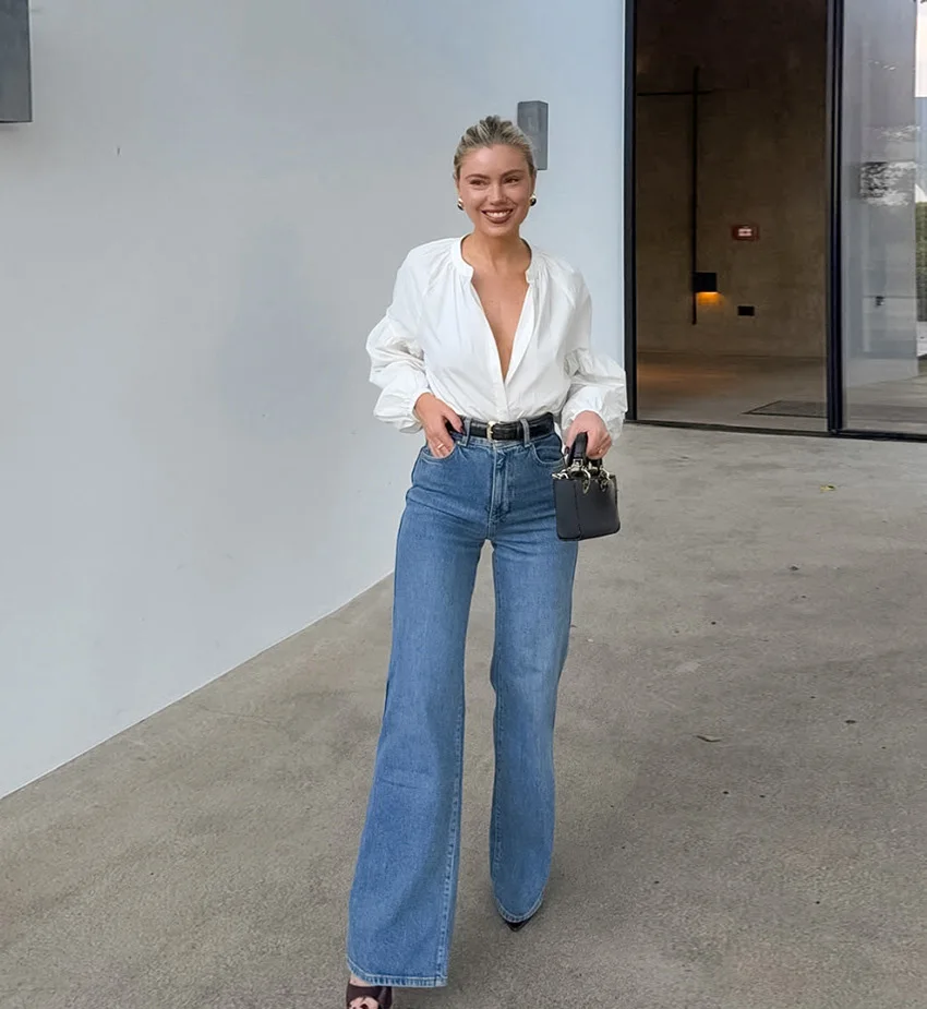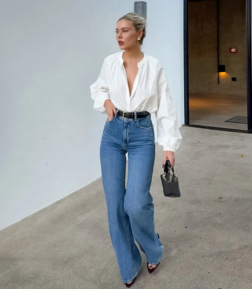 ZYHT 82024 White Blouse with Ruffled Cap Sleeves V-Neck Blouses Et Chemises Pour Femmes White Blouses for Women