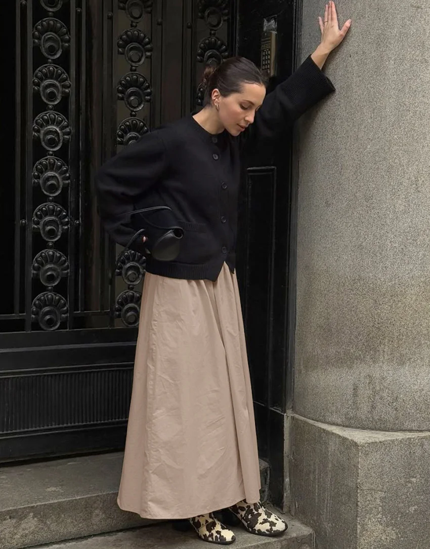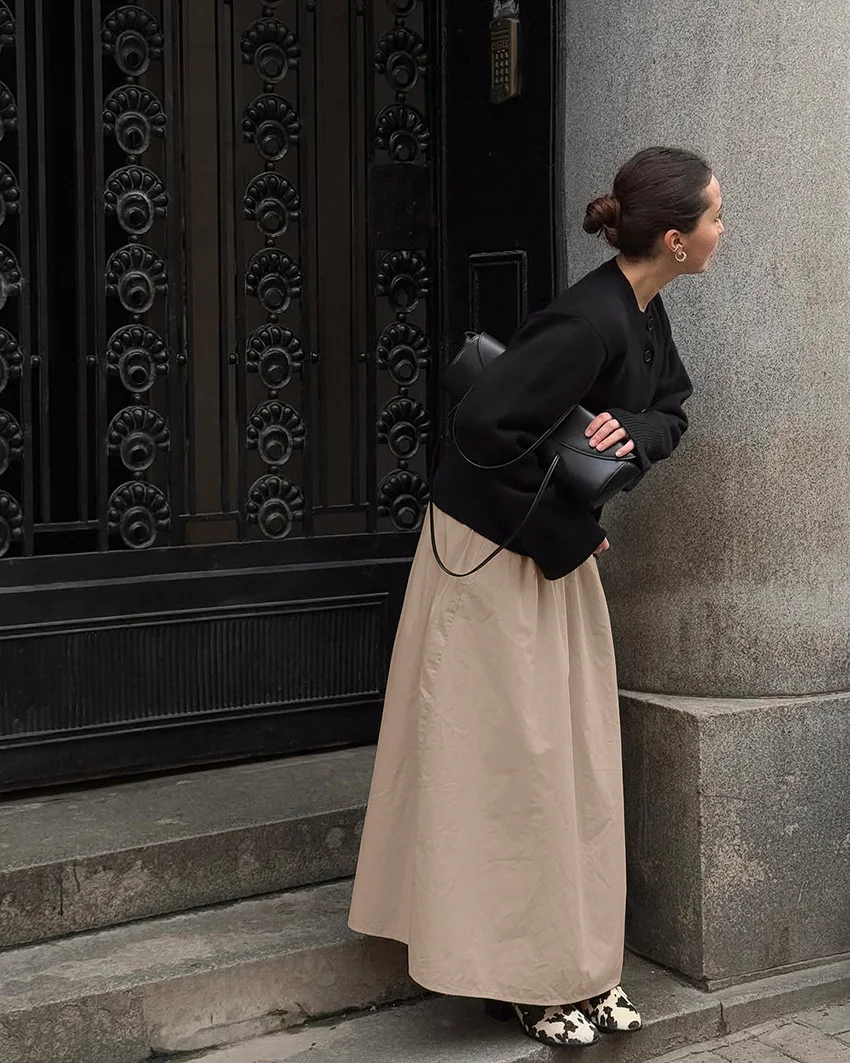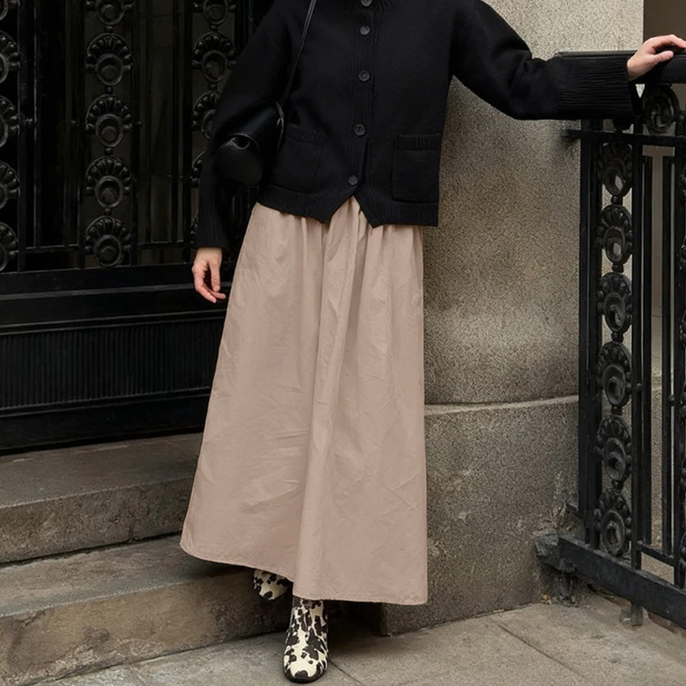 Custom OEM 2026 Spring Cross-Border Cotton Khaki A-Line Skirt High Waist Mid-Length Half Slip Wholesale Garment Factory Skirt