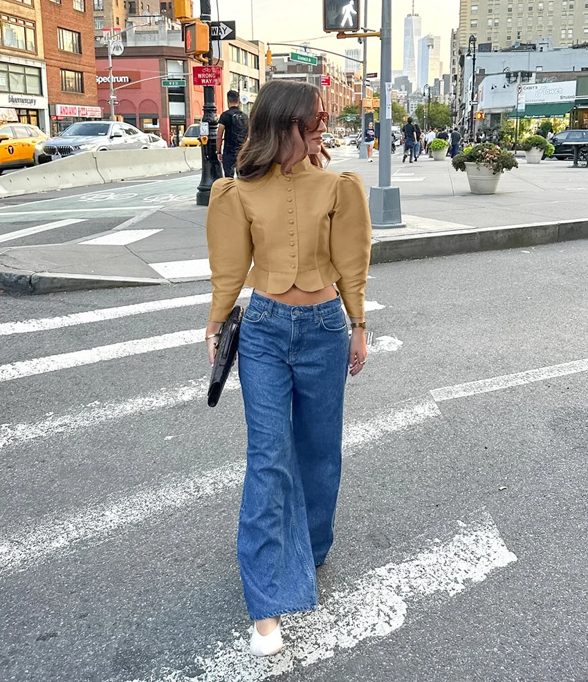 ZYHT 15545 Women's Blouses & Shirts Mint Green Tweed Blazer with Puff Sleeves & Peplum Fit Button-Detail Long Sleeve Jacket