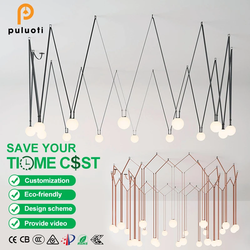 PULUOTI Creative Aluminum Knit Belt Chandelier with LED Light for Living Room Restaurant Bar Surface Mounted Belt Track Light