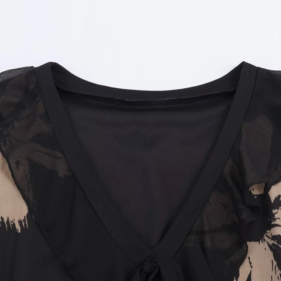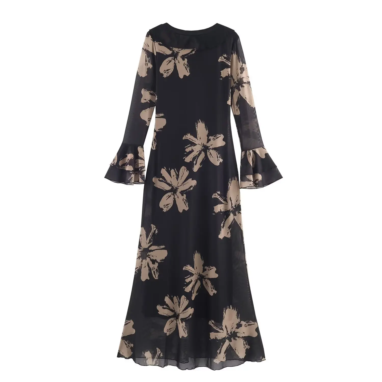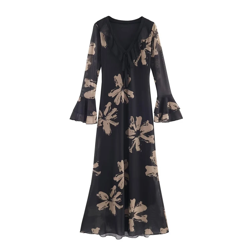 Custom Made Womens French Vintage Floral Print V Neck Dress with Ruffle Trim Tie Waist Bodycon Maxi Elegant Flared Casual Dress