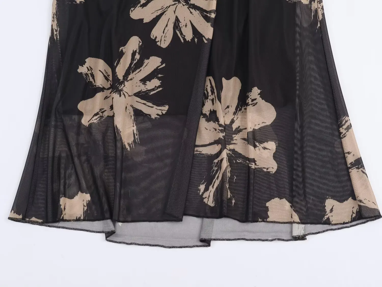 ZYHT 73957 Hot Selling Women Lady Printed Satin Beige Mermaid Fish Tail Floor Length Party Cocktail Evening Dress Gown