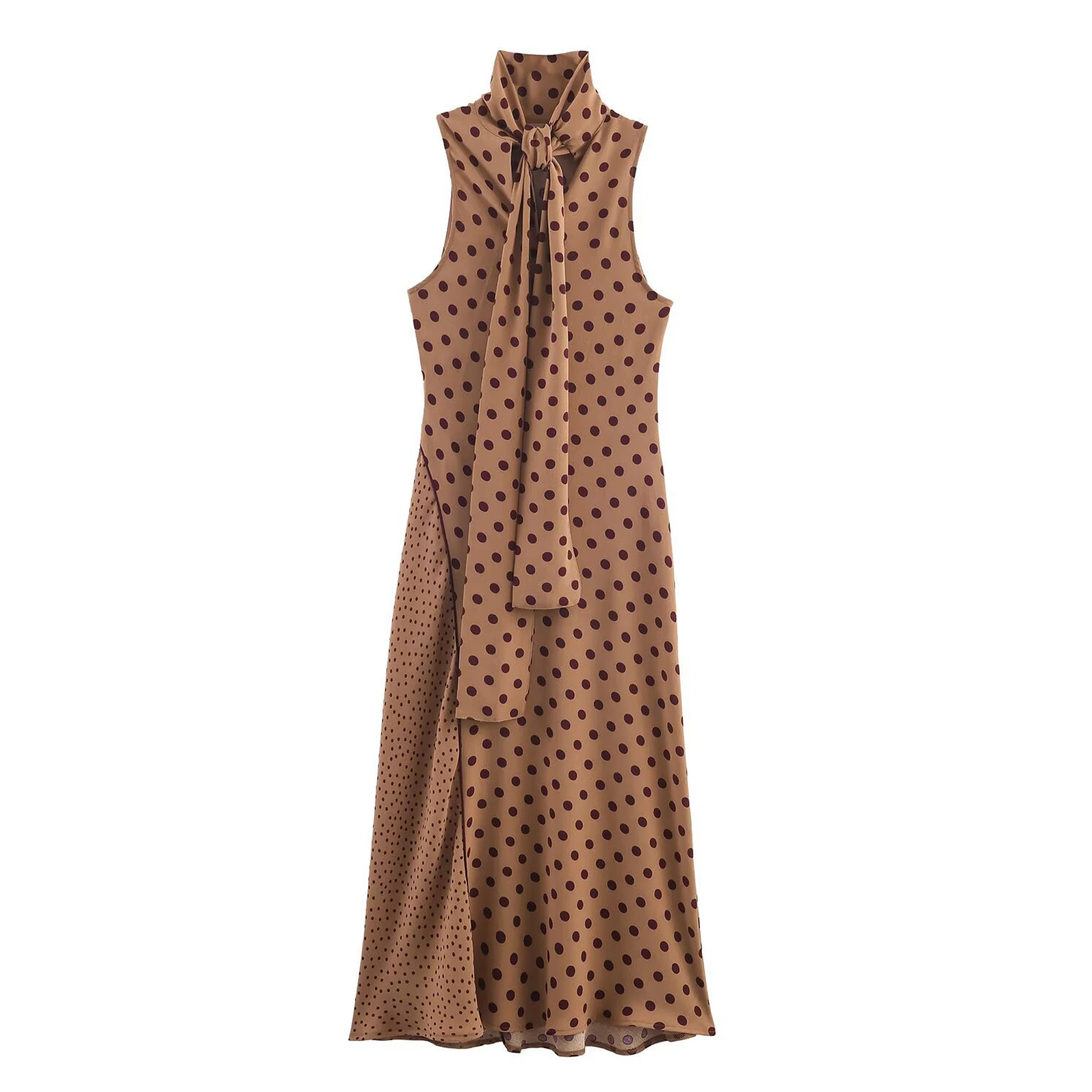 Custom Made Womens Sleeveless Polka Dot Bow Tie Midi Dress Ladies Fashion Elegant Factory Wholesale Vintage Casual Summer Dress