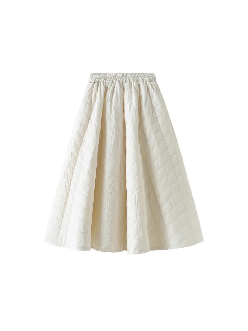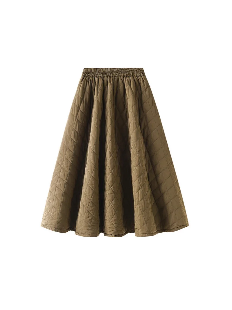Custom 2026 Fall New A-Line Skirt with Quilted Diamond Pattern Elastic Waist Padded Midi Loose Fit Vintage Casual Midi Skirt ODM