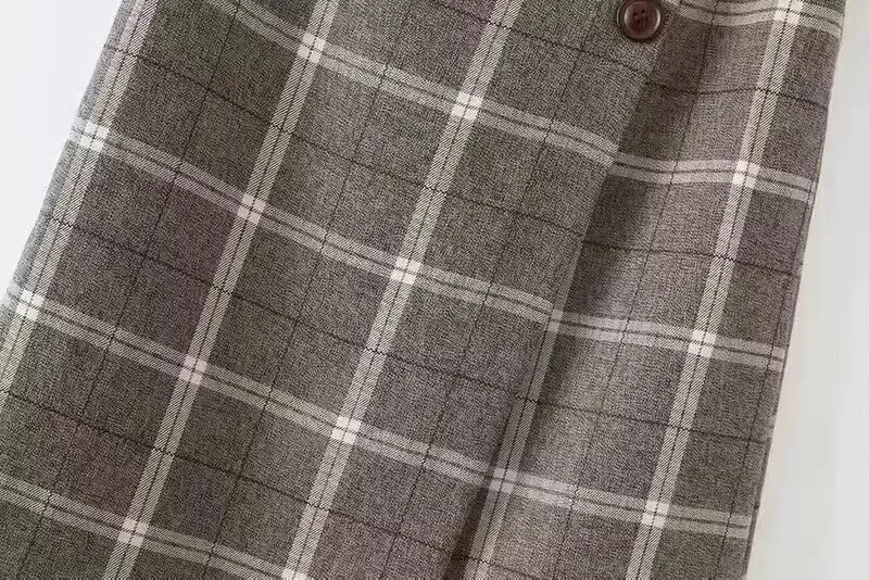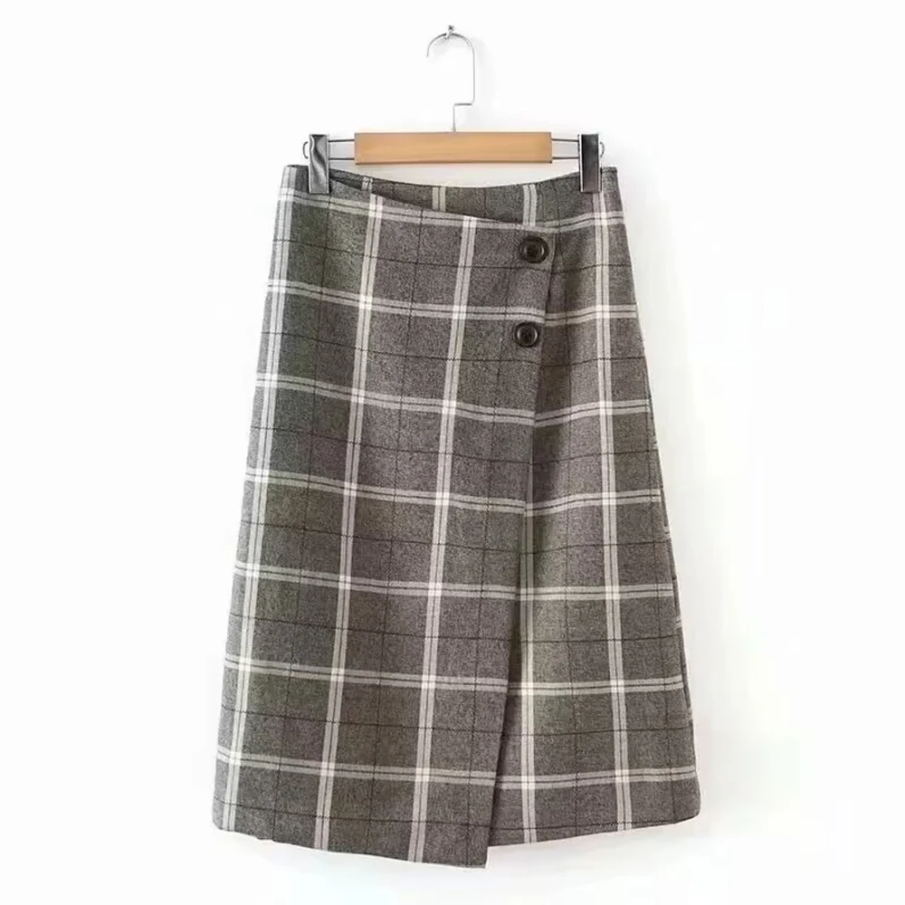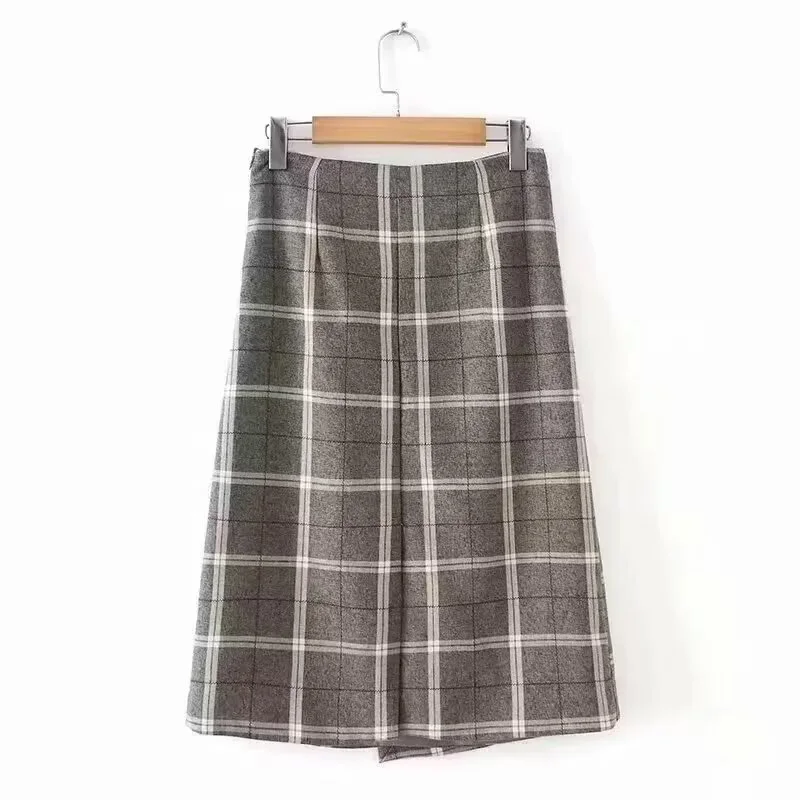 Custom French Style Plaid Midi Skirt with Button Detail for Women OEM ODM Tailored Mid-Length Ladies Skirt Vintage Casual Skirt