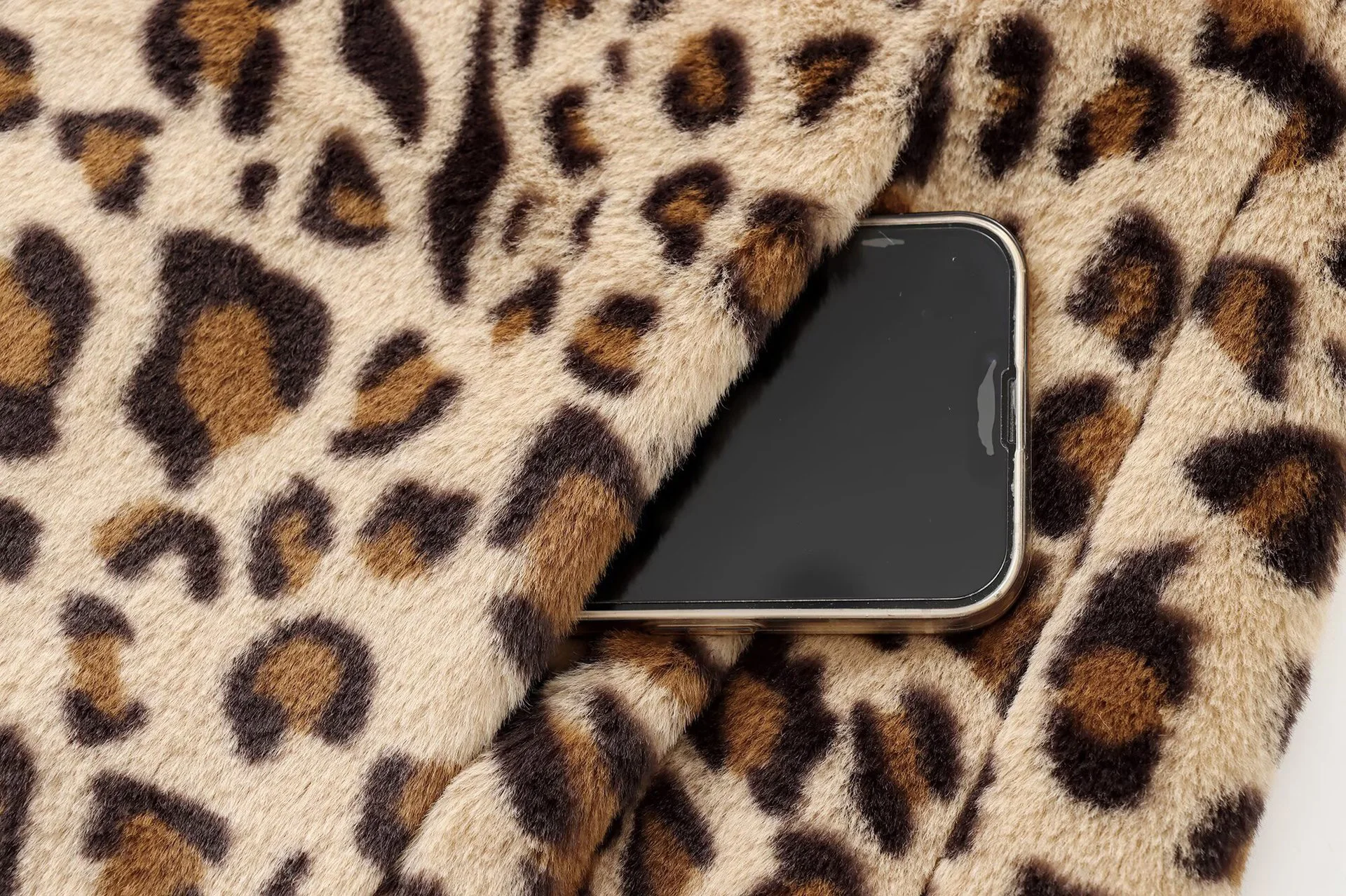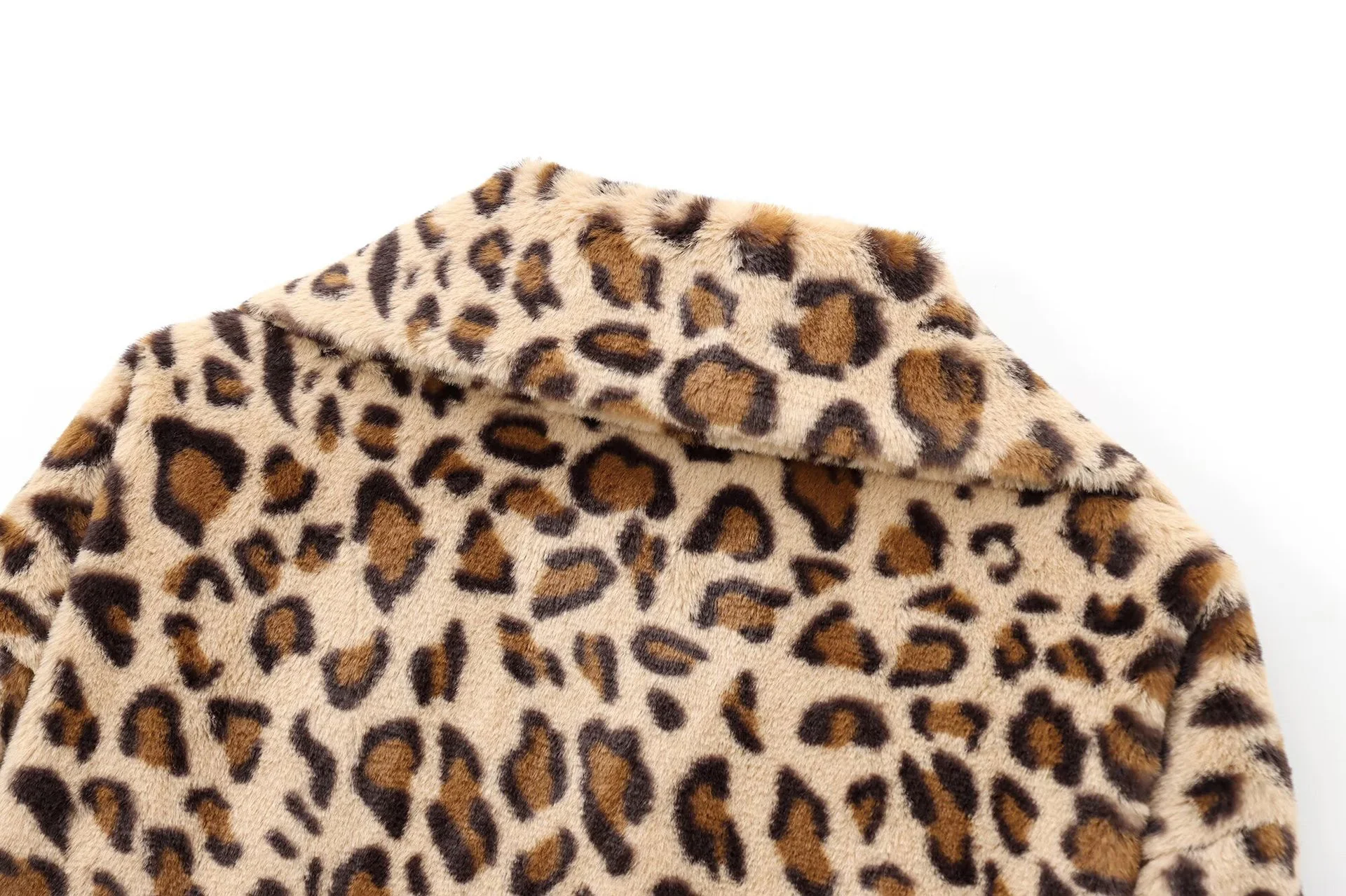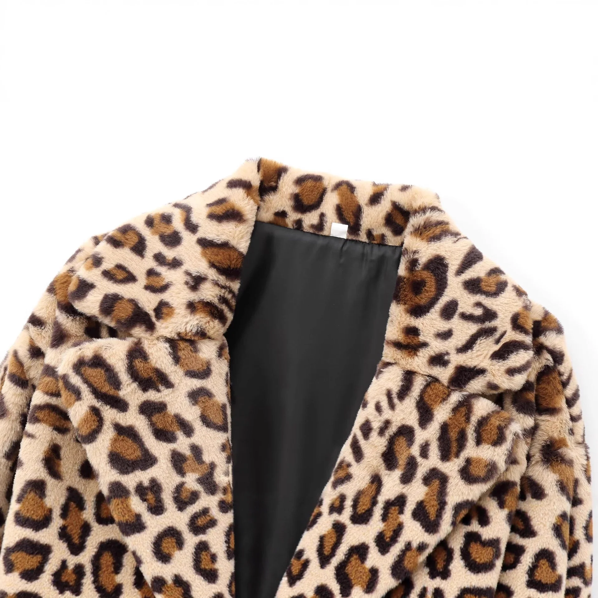 Custom Women Leopard Print Faux Fur Coat Midi Length Trench Style Outerwear Animal Print Elegant Overcoat OEM Factory Wholesale