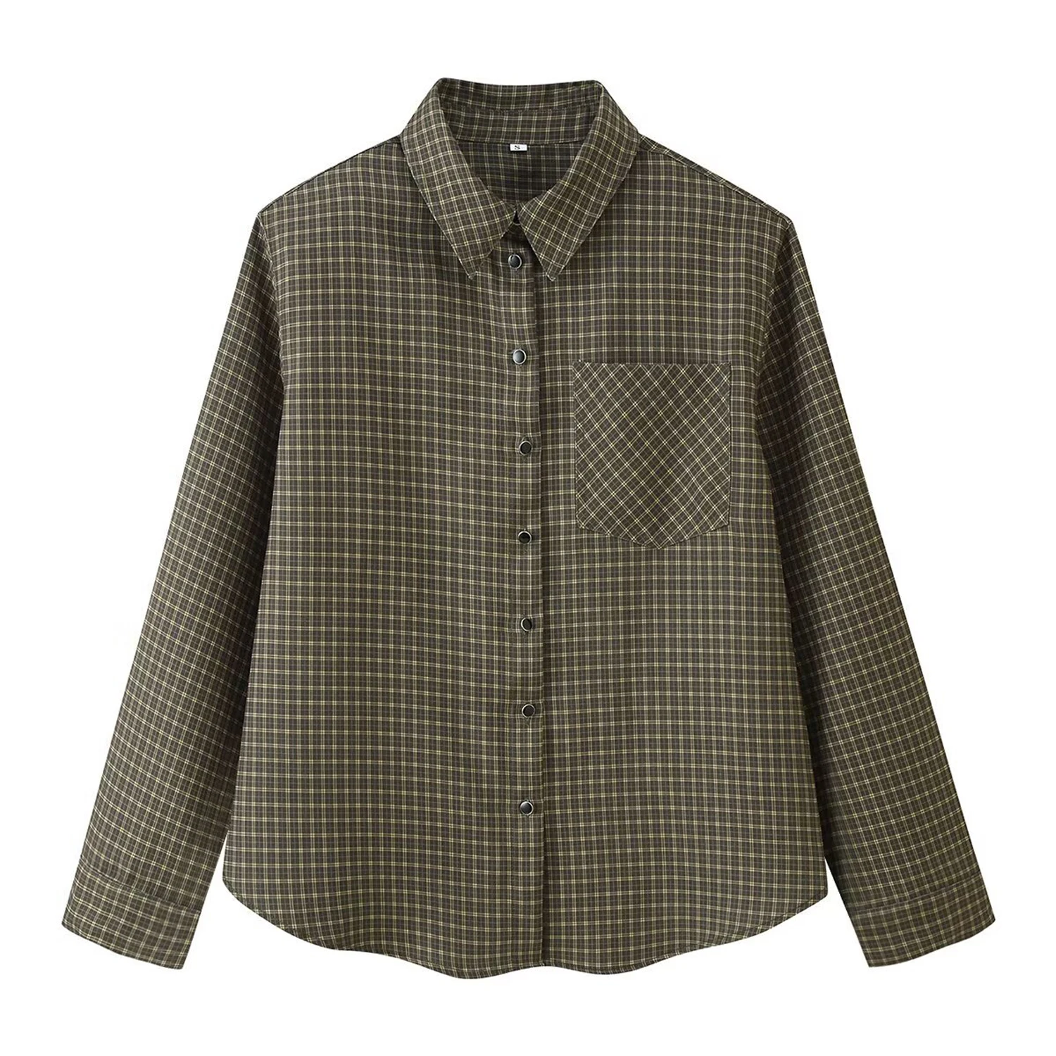 Custom Women Poplin Shirt Single Breasted Padded Shoulders Notch Lapel Plaid Essential Office Casual Wear OEM Factory Wholesale