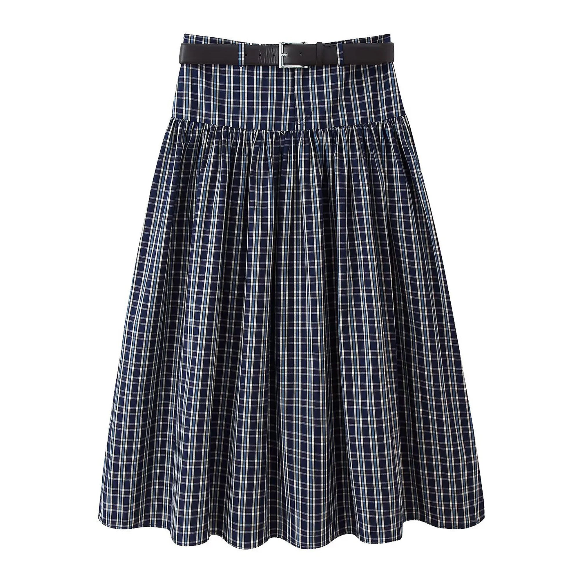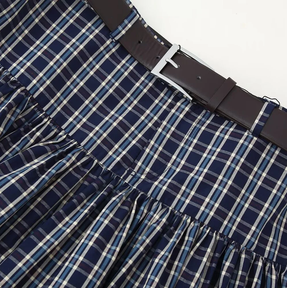 Custom Women Retro Plaid Midi Skirt High Waist with Belt Versatile A-Line Office Wear Timeless Design Factory Direct Wholesale