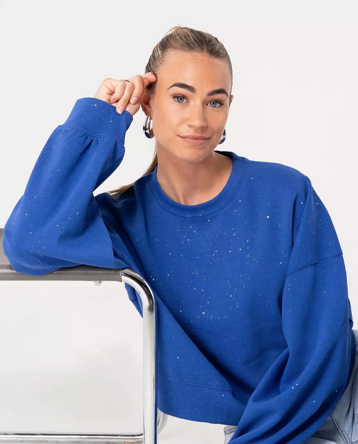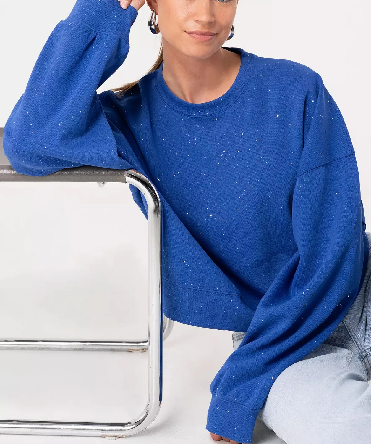 Custom Women Glitter Round Neck Sweatshirt Essential Pullover No Hood Layering Top Basic Must-Have OEM Factory Direct Wholesale