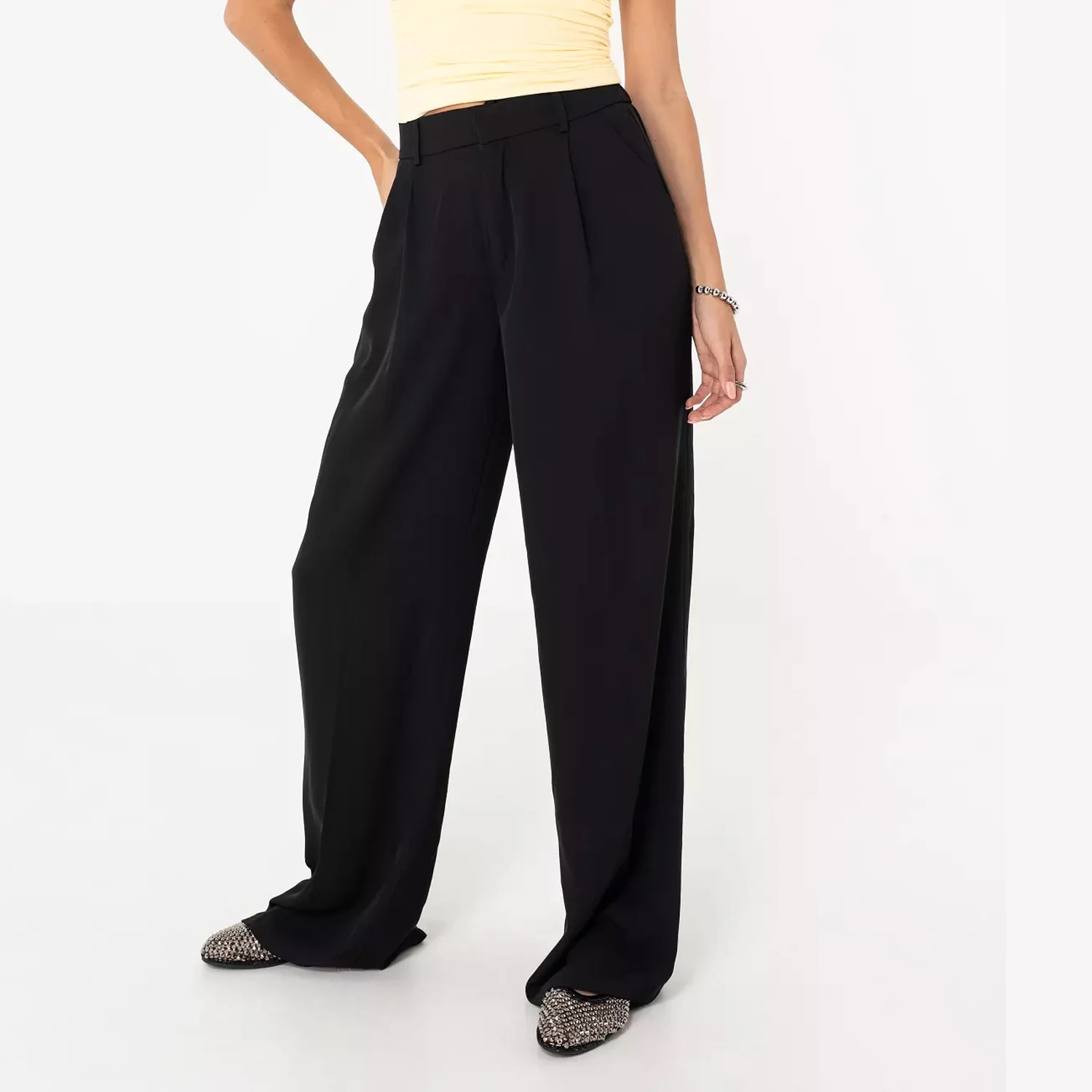 Custom Women Black Office Pants Straight Leg Loose Fit Essential Work Trousers Relaxed Fit Slack OEM Factory Direct Wholesale