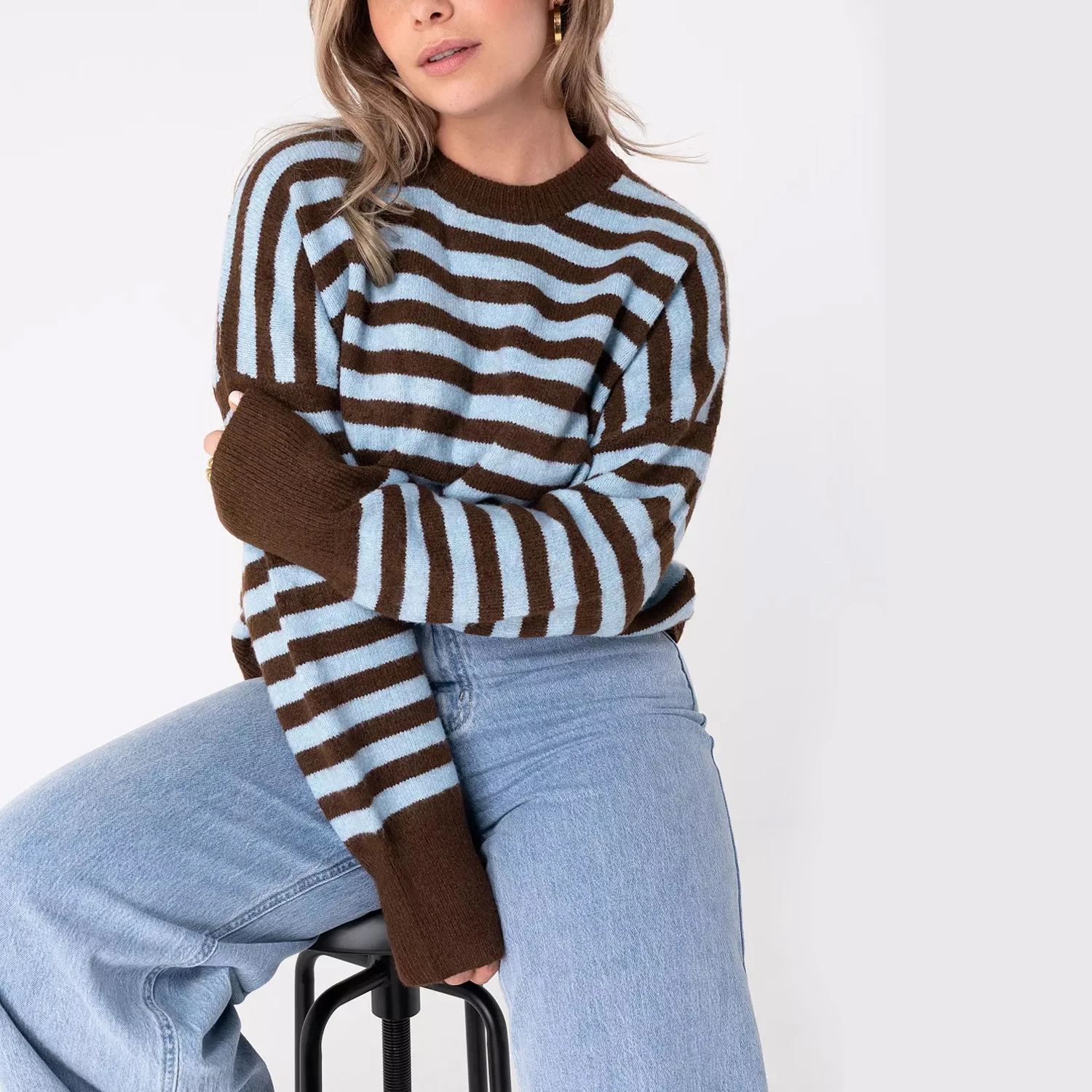 Custom Women Striped Knit Cardigan Essential Loose Fit Sweater Jacket Basic Must-Have Pullover OEM ODM Factory Direct Wholesale