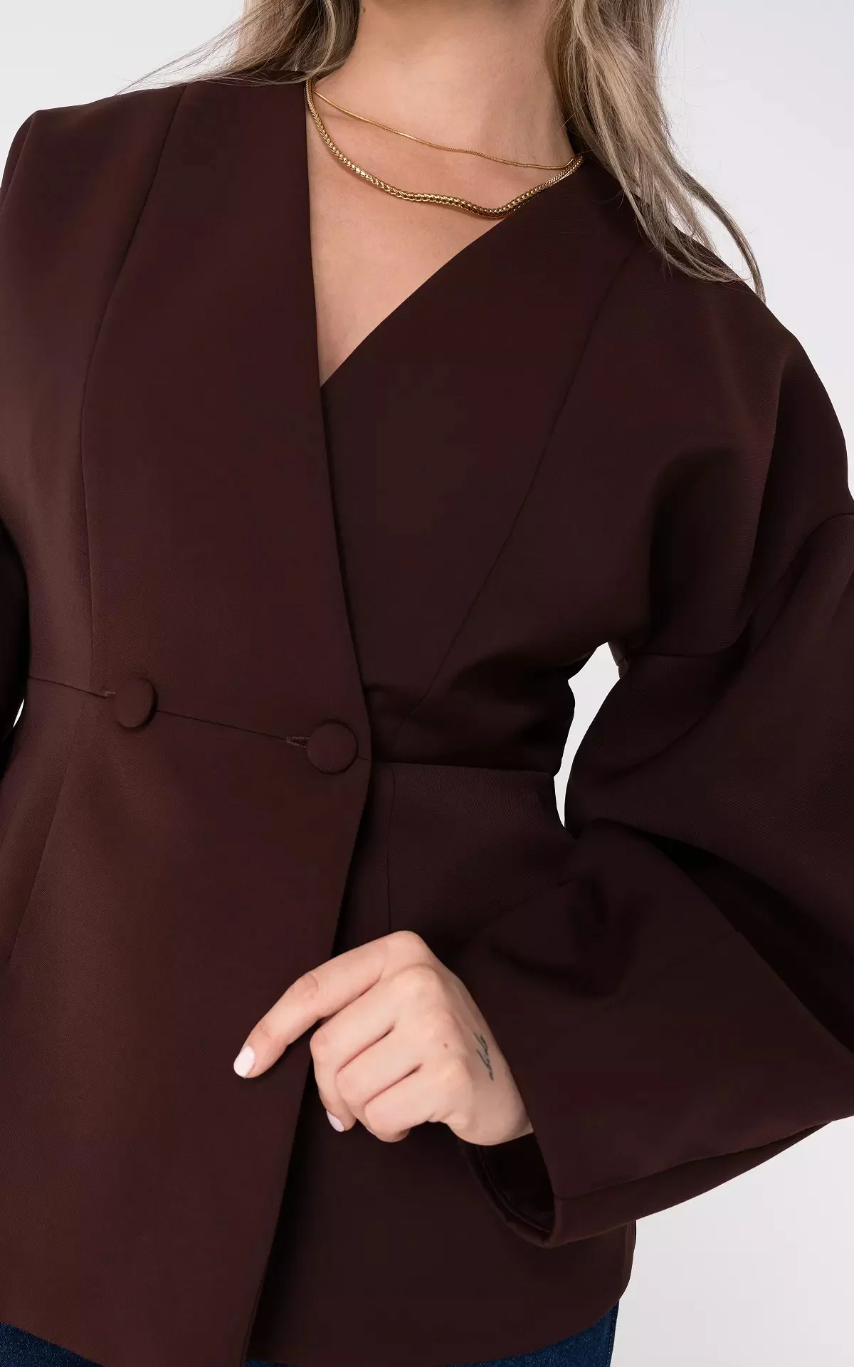 ZYHT 15545 Women's Blouses & Shirts Mint Green Tweed Blazer with Puff Sleeves & Peplum Fit Button-Detail Long Sleeve Jacket