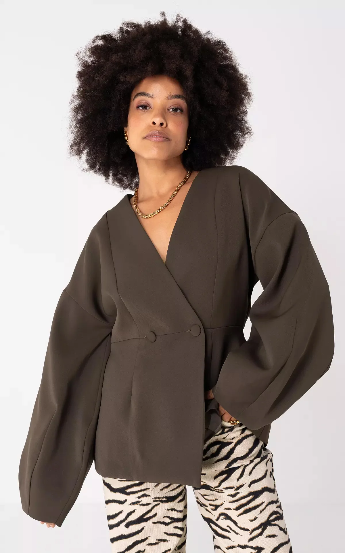 Custom Women V-Neck Double Breasted Blazer Relaxed Sleeve Loose Fit Casual Office Jacket OEM ODM Factory Wholesale Formal Coat