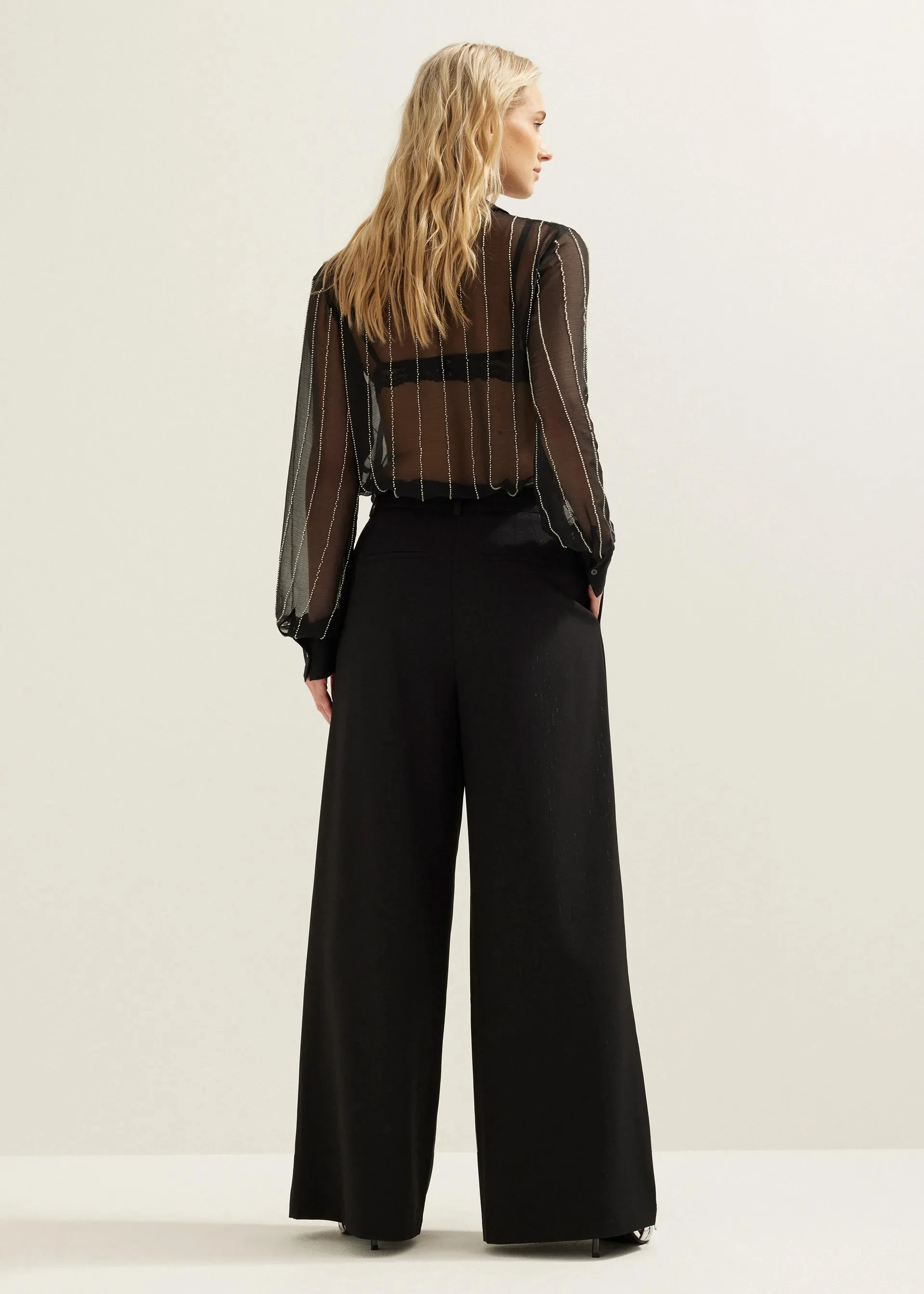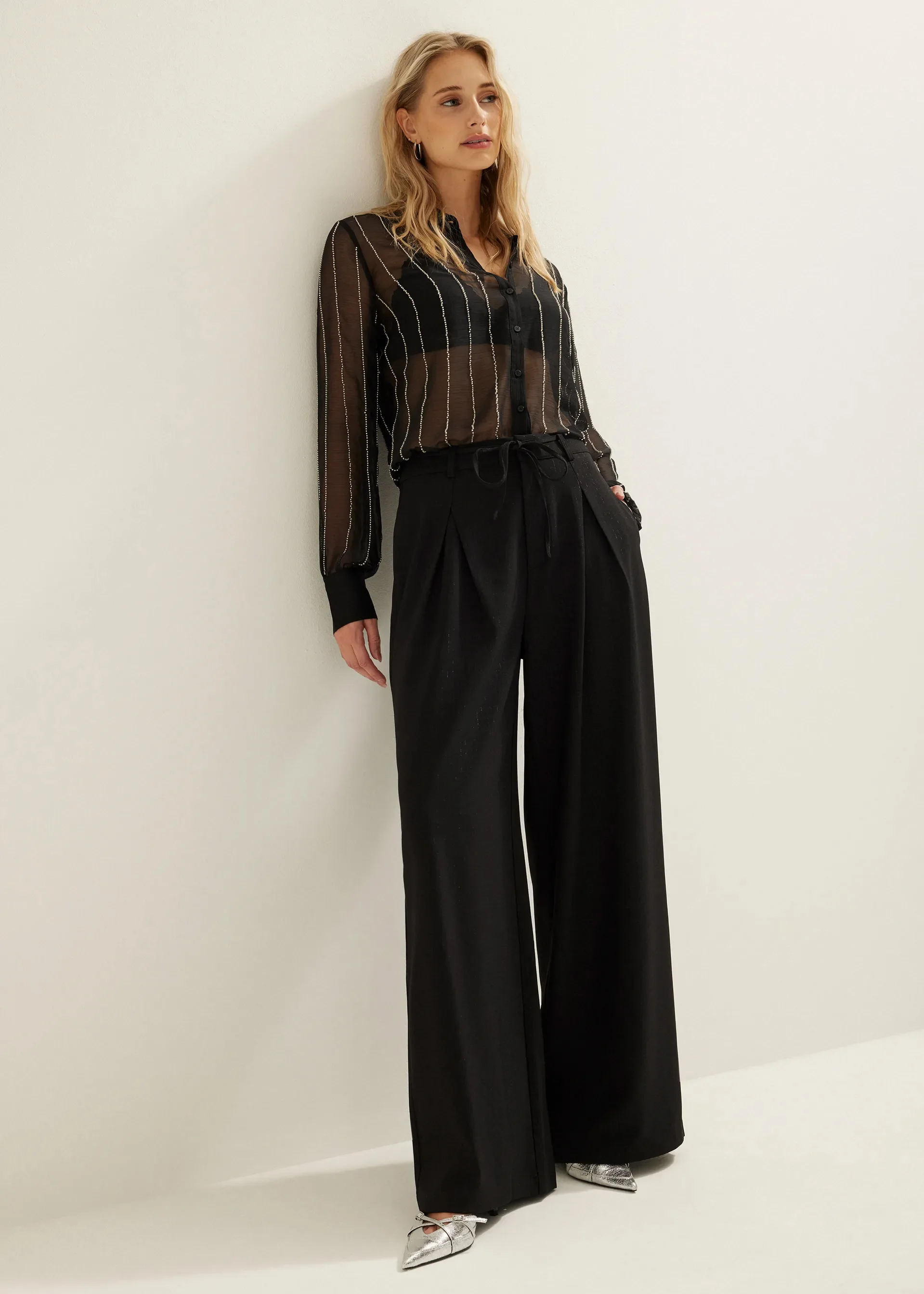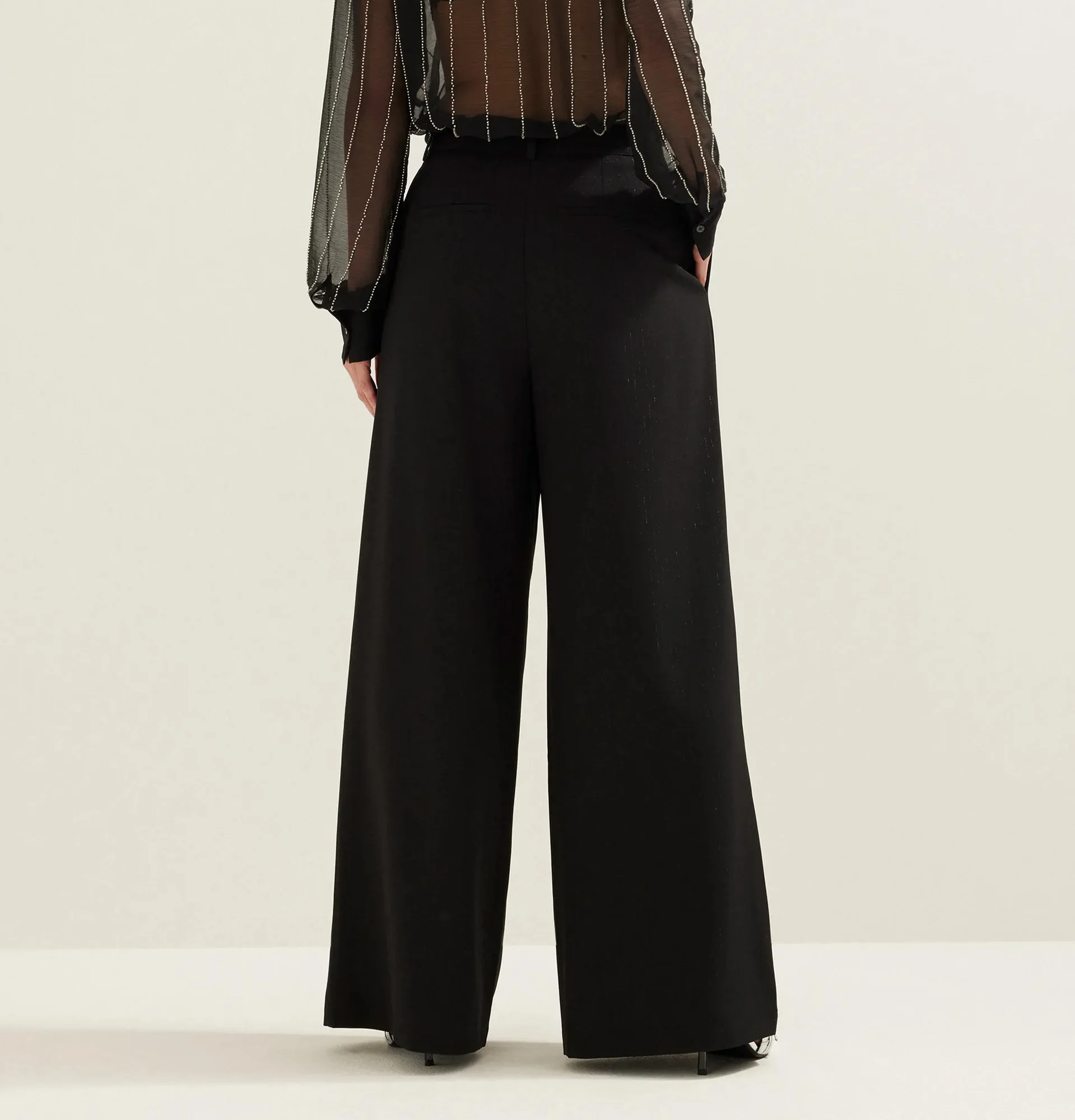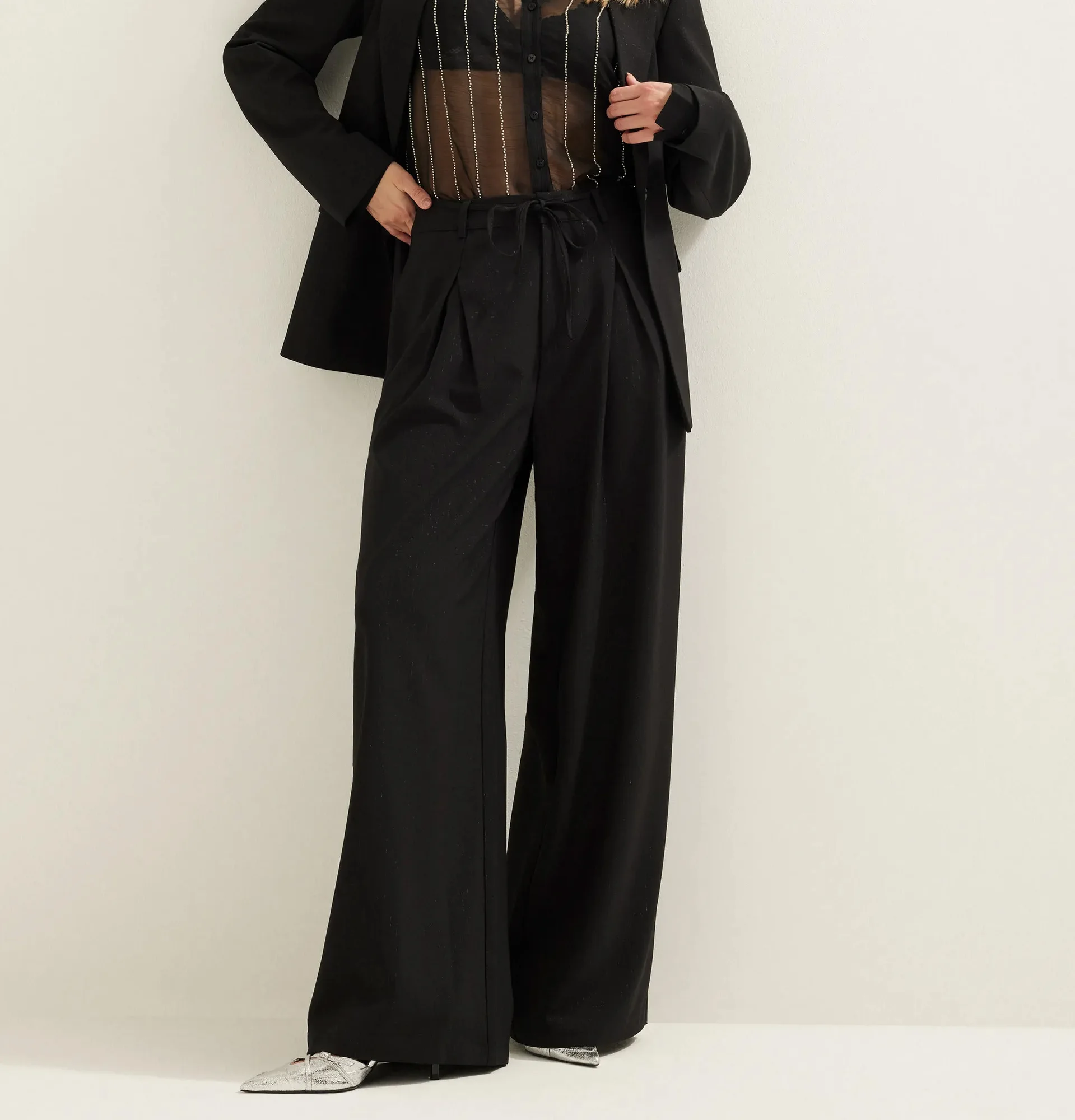 Custom Women Black Pleated Wide Leg Pants with Bow Detail High Waist Trousers Elegant Palazzo Pants OEM Factory Direct Wholesale