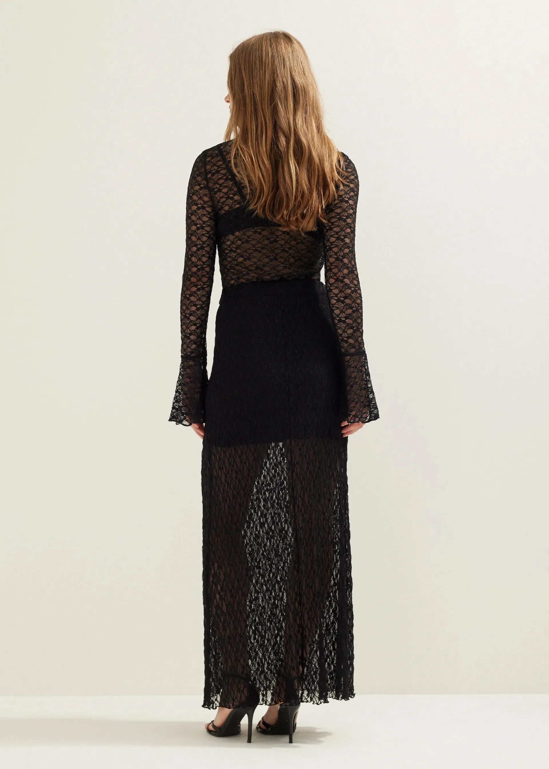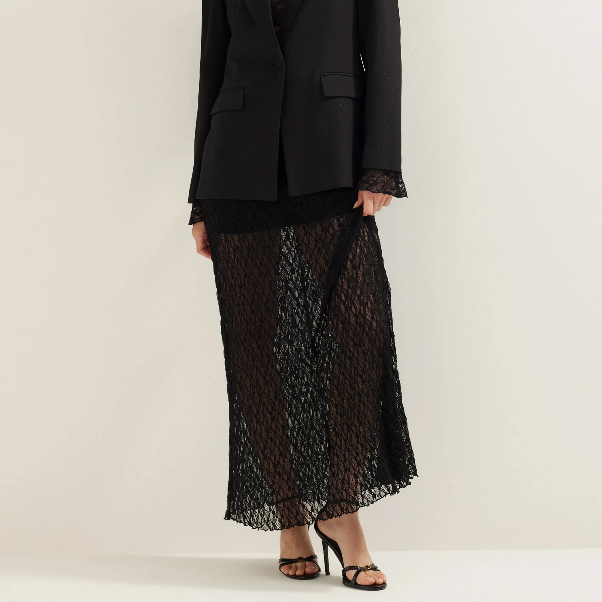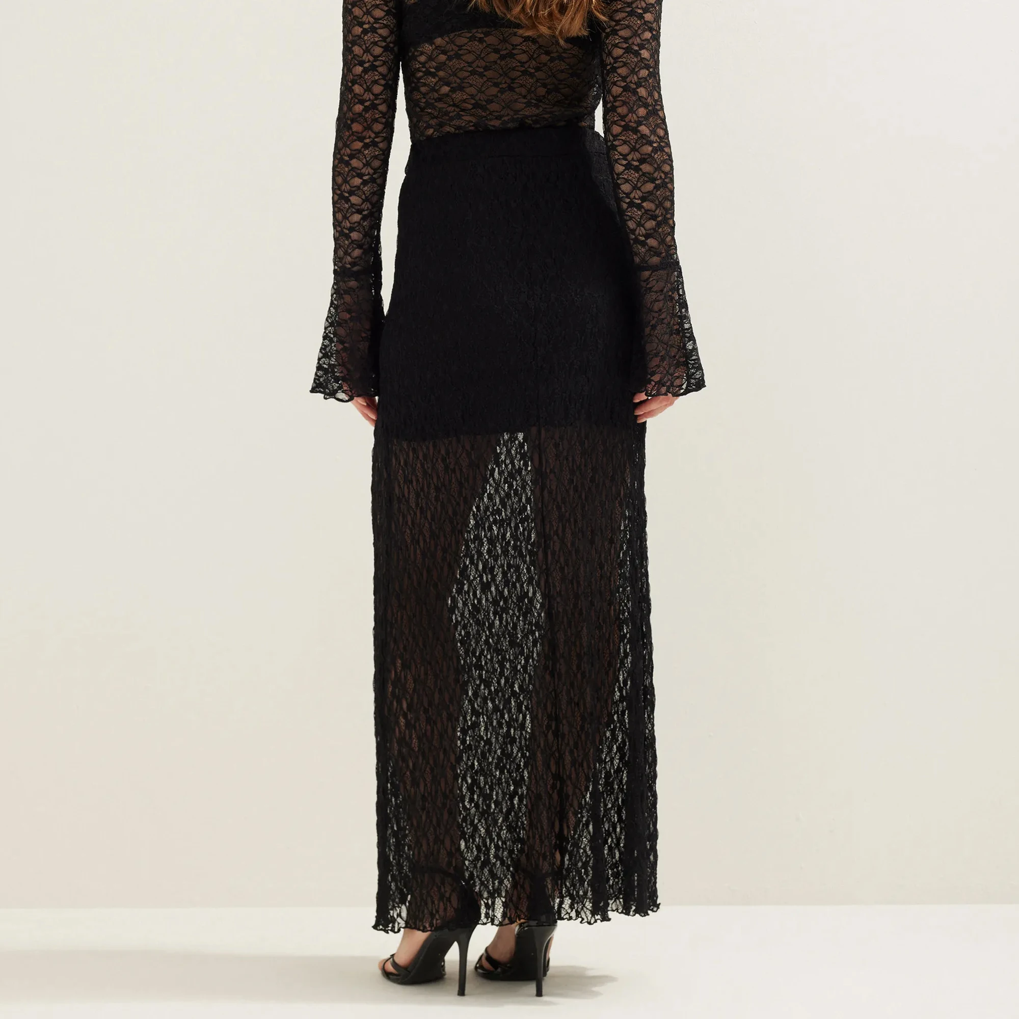 Custom Women Sheer Black Lace Maxi Skirt Sexy See Through High Slit Evening Skirt Long Semi-Transparent Factory Direct Wholesale