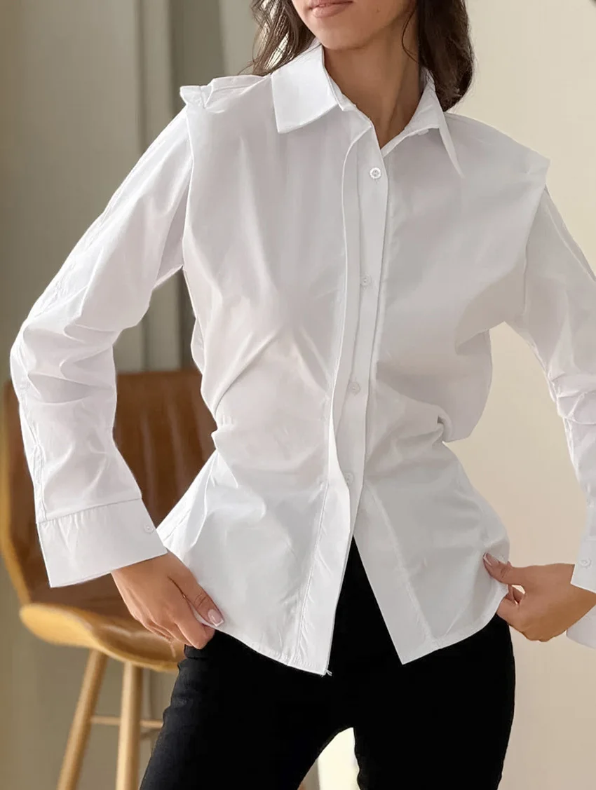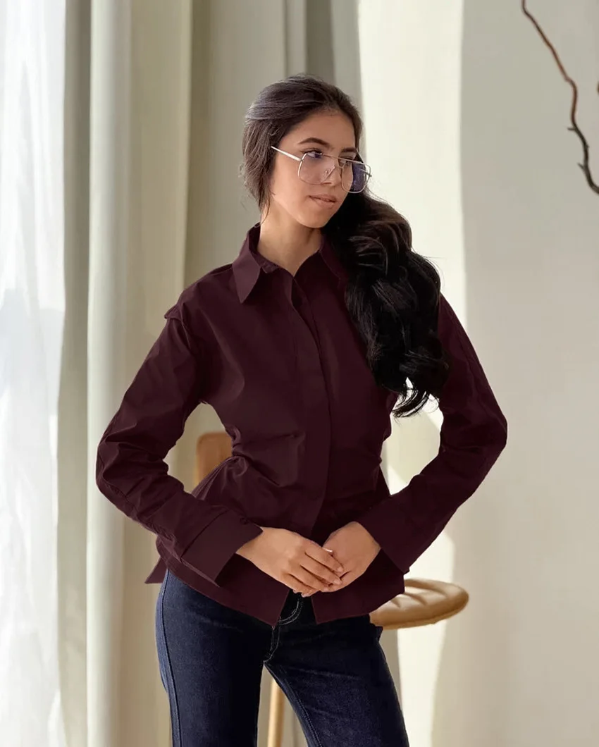 Custom 2026 Spring Cotton Shirt with Waist Tie Single Breasted Button Long Sleeve Elegant Blouse Sophisticated Top OEM Factory