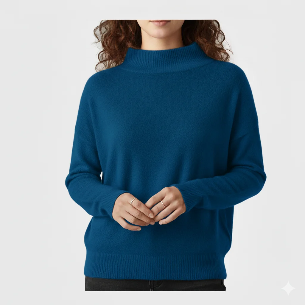 High Quantity Mockneck Long Sleeve Plush Knit Relaxed Everyday Fit Autumn Winter Casual OEM Custom Breathable