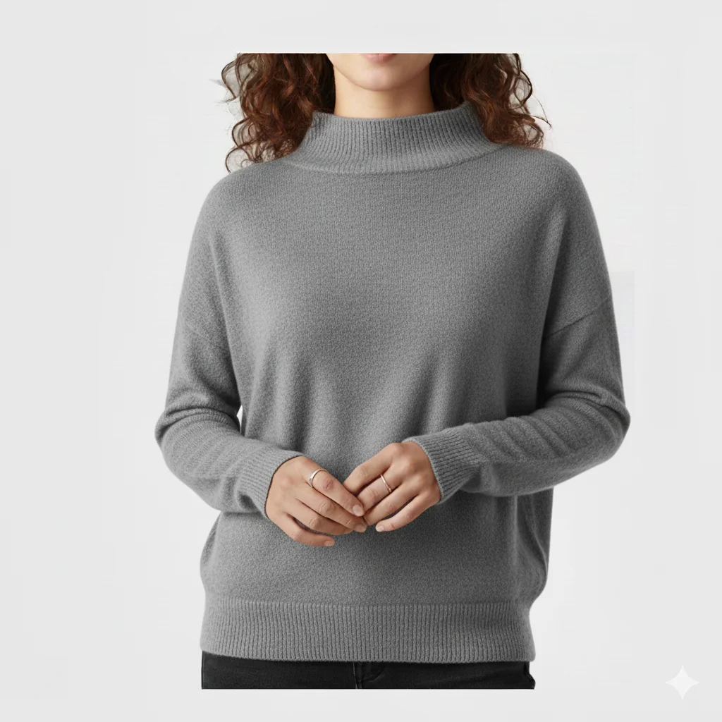 Women Solid Fleece Knitted Oversized Mockneck Winter Layer Premium Soft Feel Long Sleeve Casual Relaxed Lounge Fit Trendy