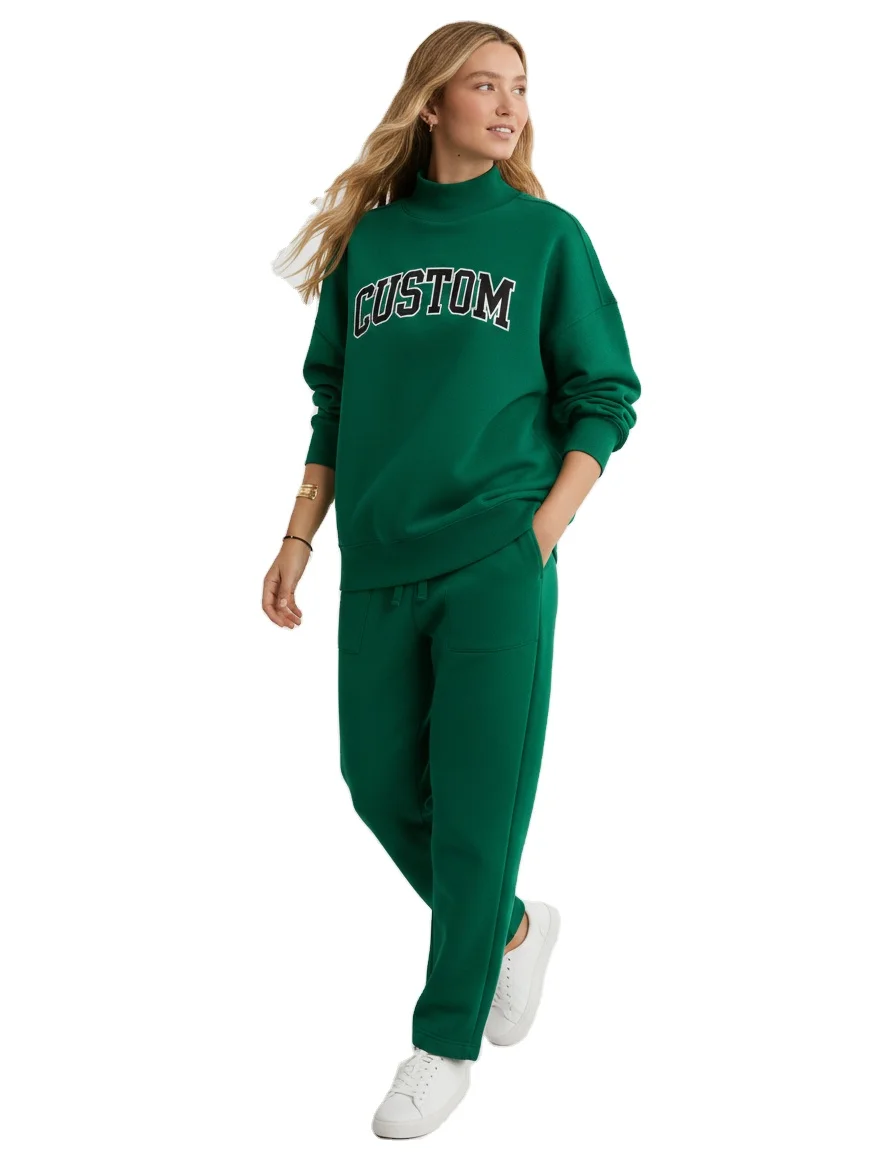 Custom Embroidered Solid Long Soft Cotton Mockneck Sweatshirt Pullover Sweater Fleece Oversized Winter Autumn Casual Women
