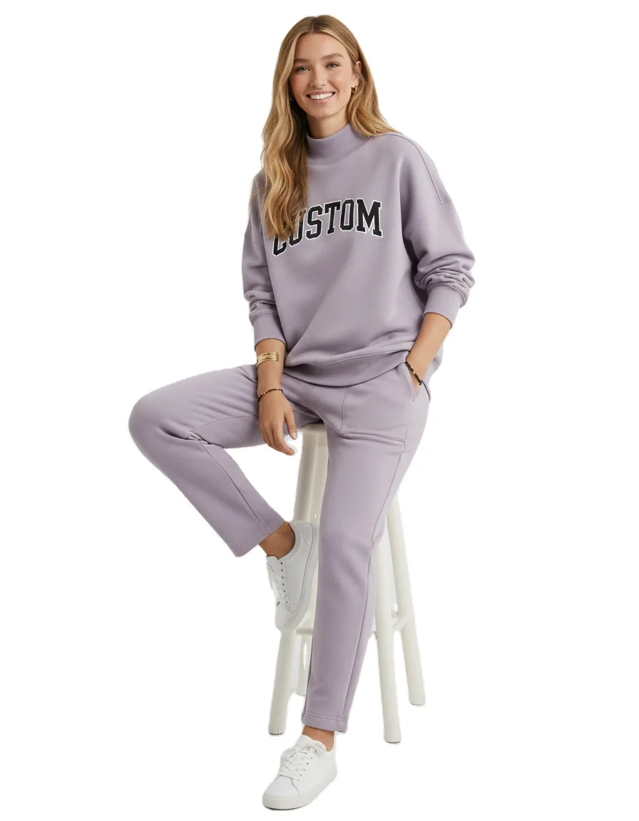 2026 OEM Custom Logo High Quality Fleece Polyester/Cotton Oversized Mockneck Sweatshirt for Women