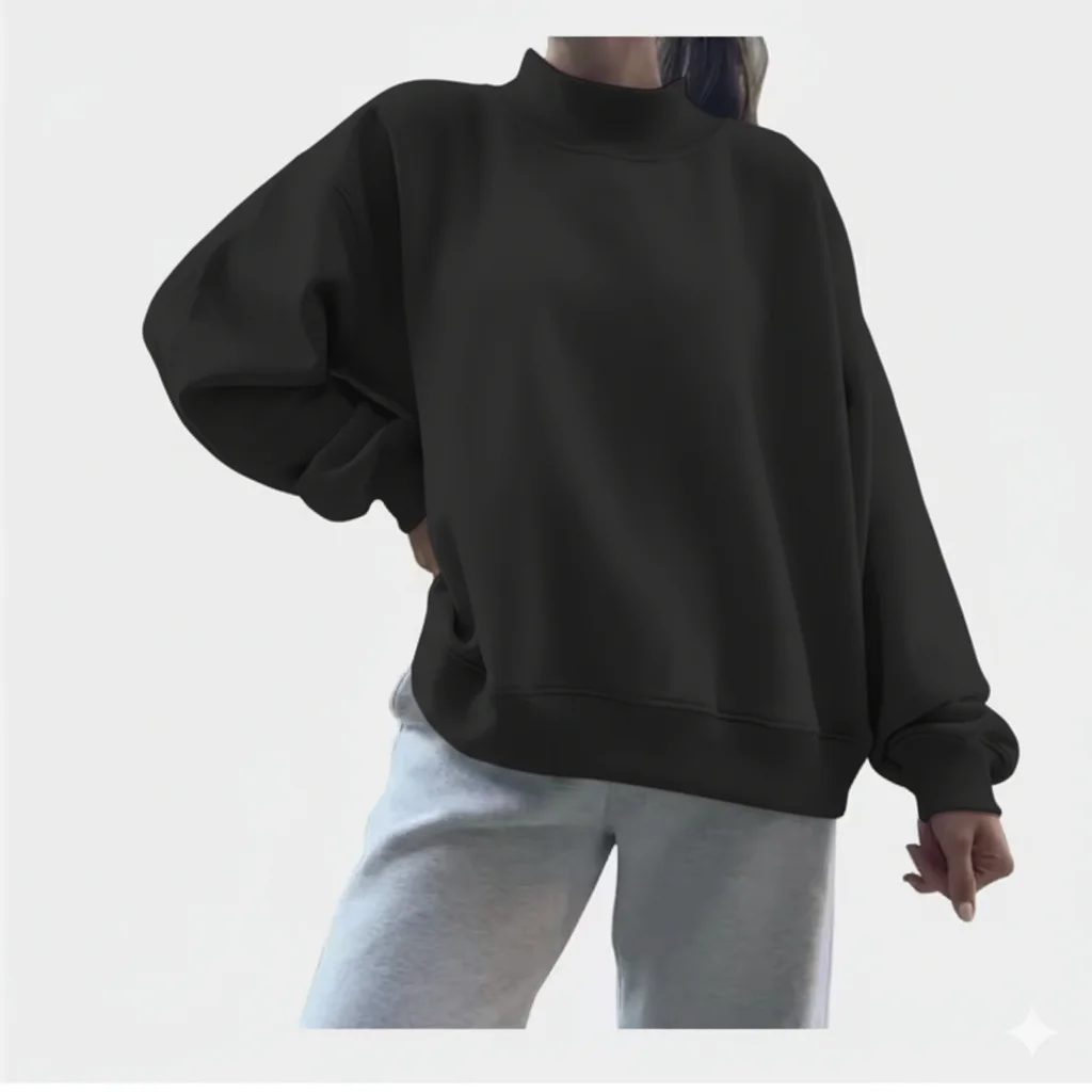 2026 Custom Women High Quality Fleece Oversized Pullover Sweatshirt Turtleneck Winter Front Logo OEM Service