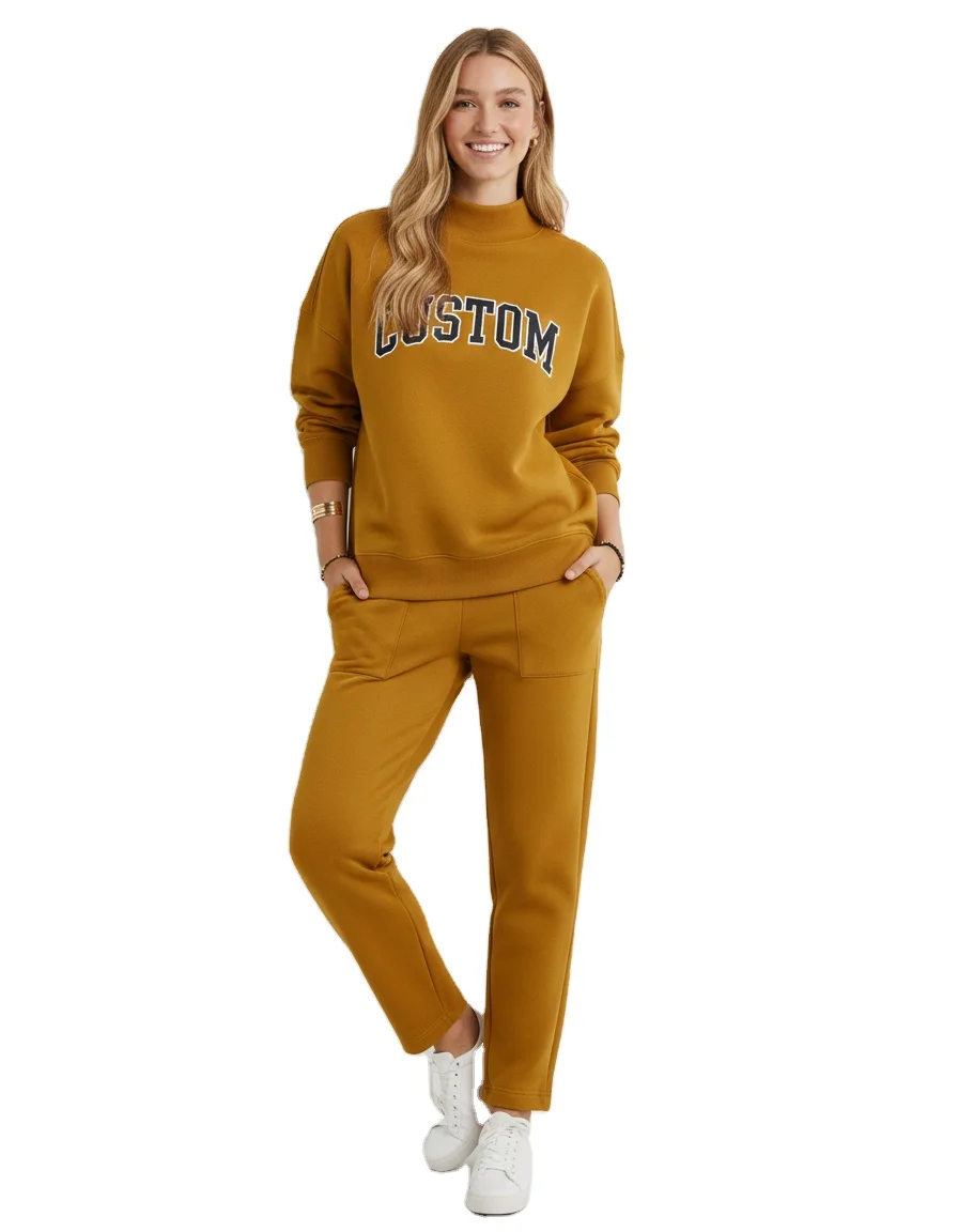 Custom Embroidered Solid Long Casual Eco-Friendly Soft Cotton Fleece Oversized Women's Mock Neck Pullover Sweatshirt