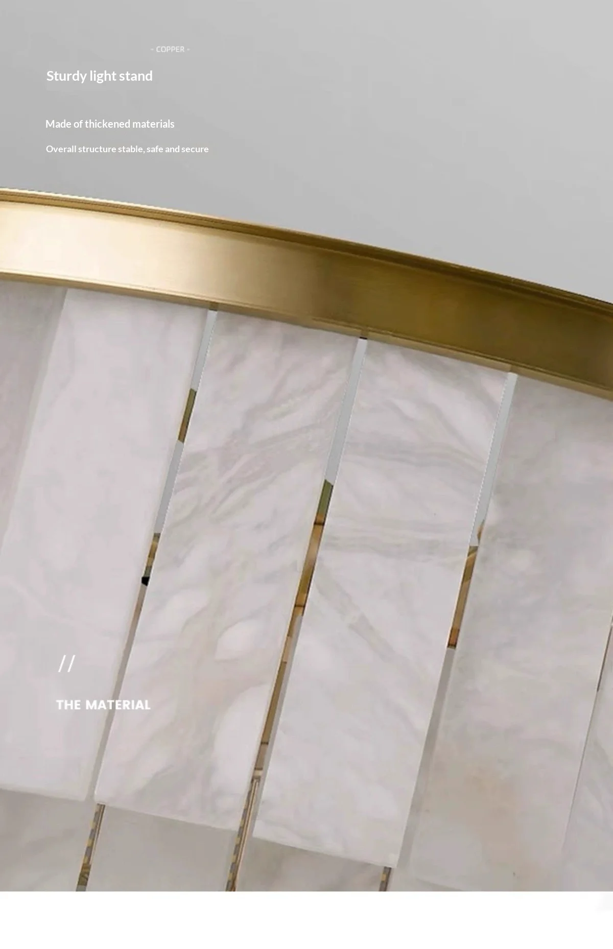 JACKAUN Spanish Marble Copper Round Chandelier 5 Tiers Adjustable Gold Pendant Lamp Dia 80cm Living Room Hanging Lamp